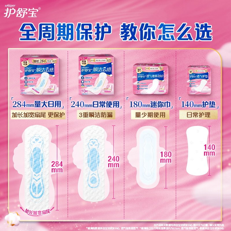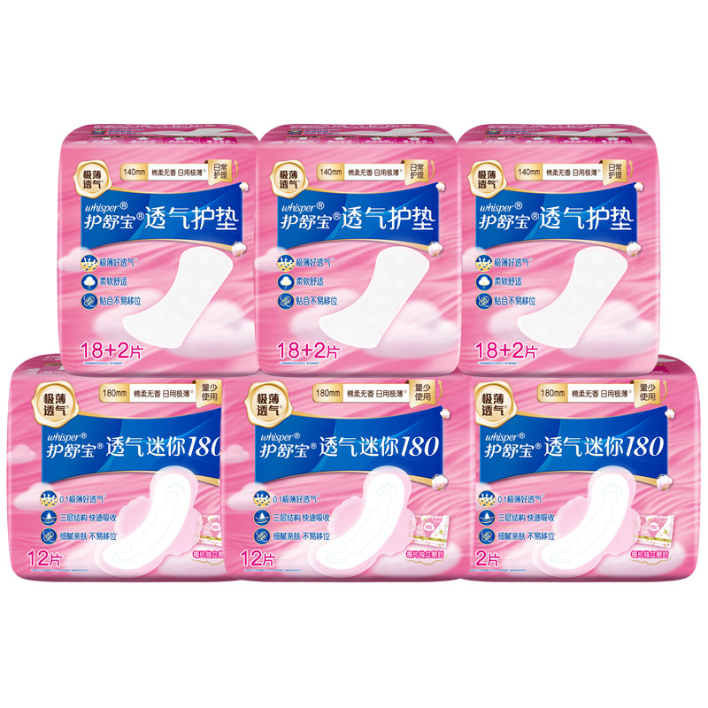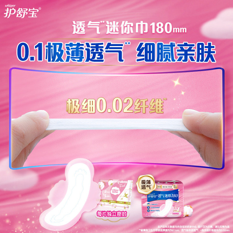 护舒宝透气护垫迷你巾少女卫生巾140mm180mm日用云感棉柔姨妈巾