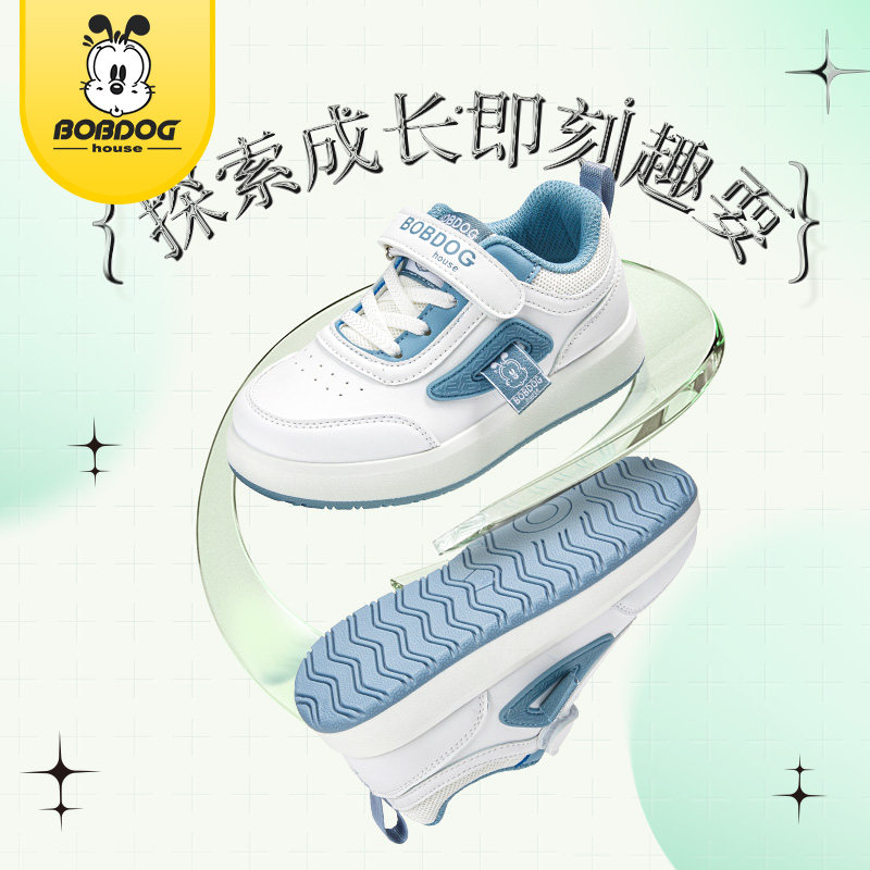 巴布豆男女童鞋子2025秋季新款时尚百搭运动男孩中大童板鞋小白鞋