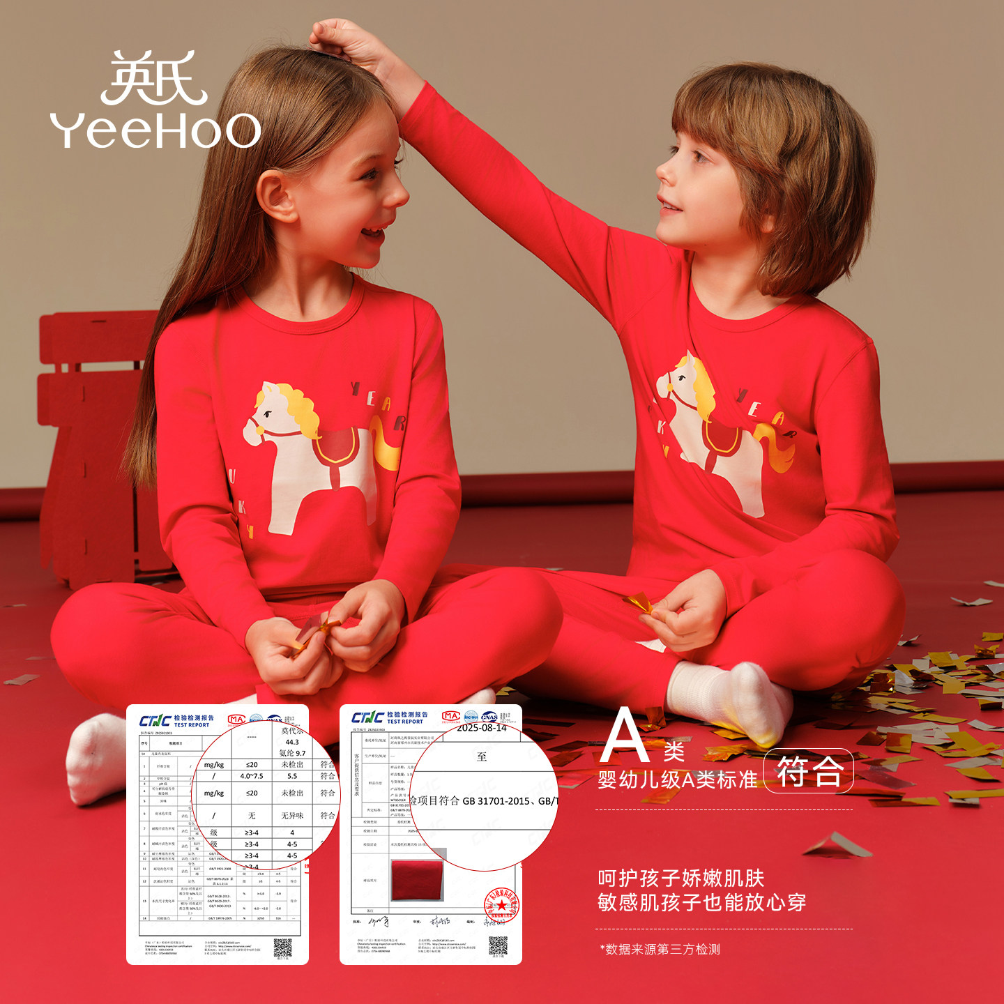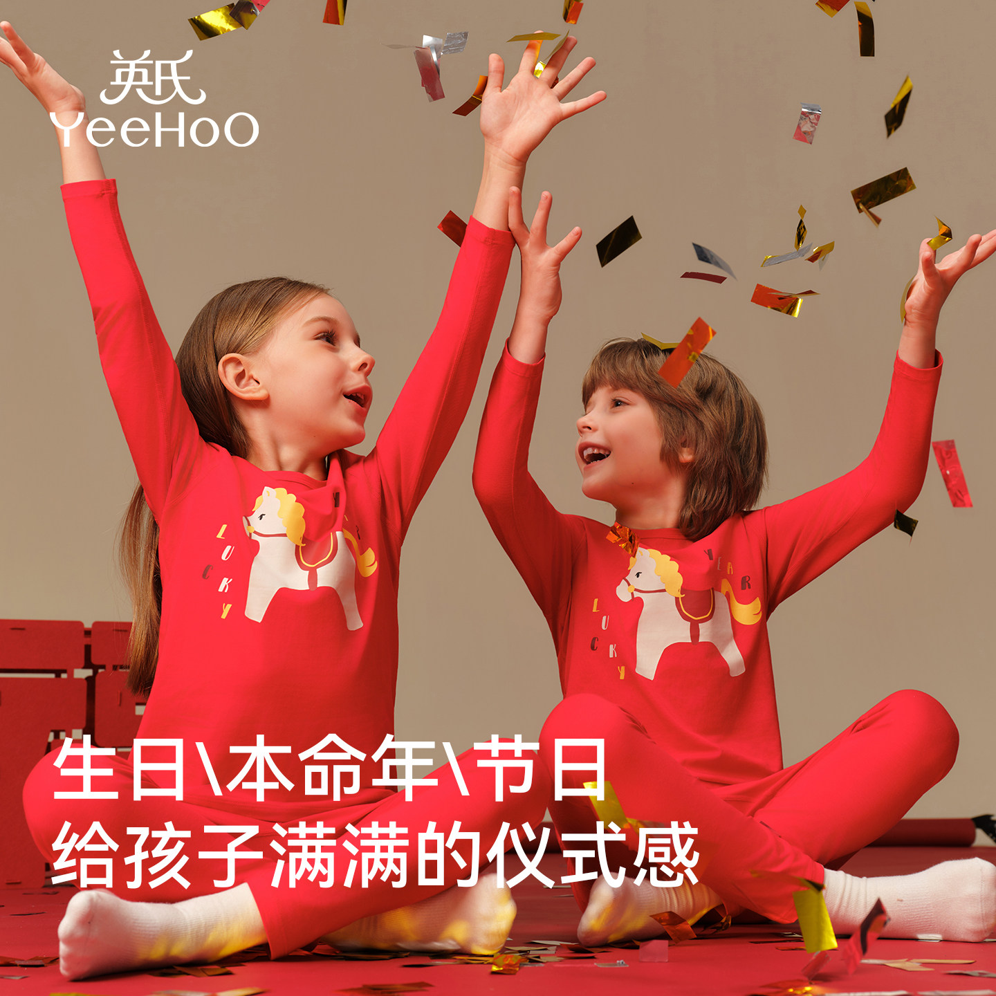 英氏儿童本命年秋衣秋裤套装男女童新年款红色a类保暖内衣冬新款