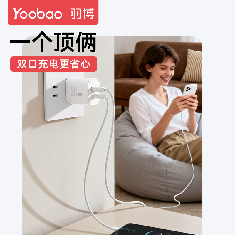 羽博迷你便携充电器快充20W适用于iPhone15pro苹果14闪充华为 小米安卓手机数据线USB充电头双口一套充电插头
