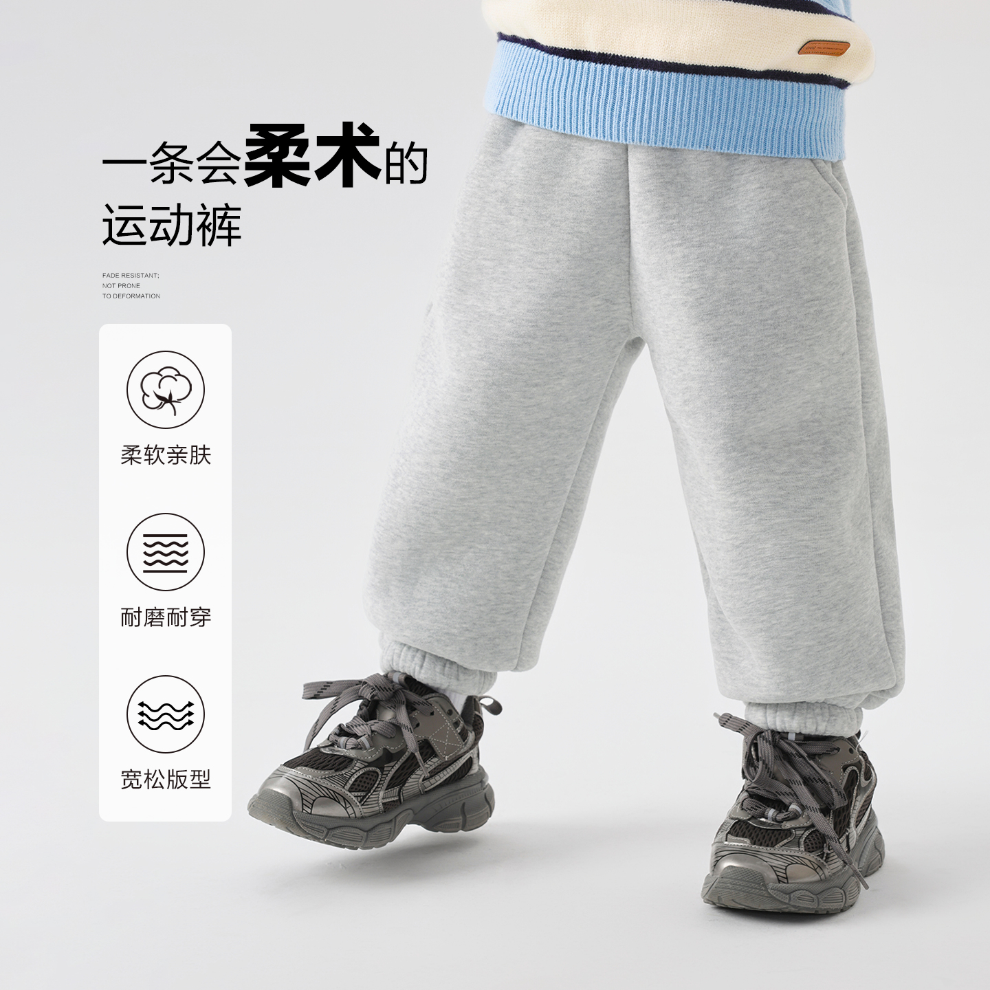 右欧男童女童运动裤加绒加厚小狗儿童保暖卫裤束脚裤冬季新款童装
