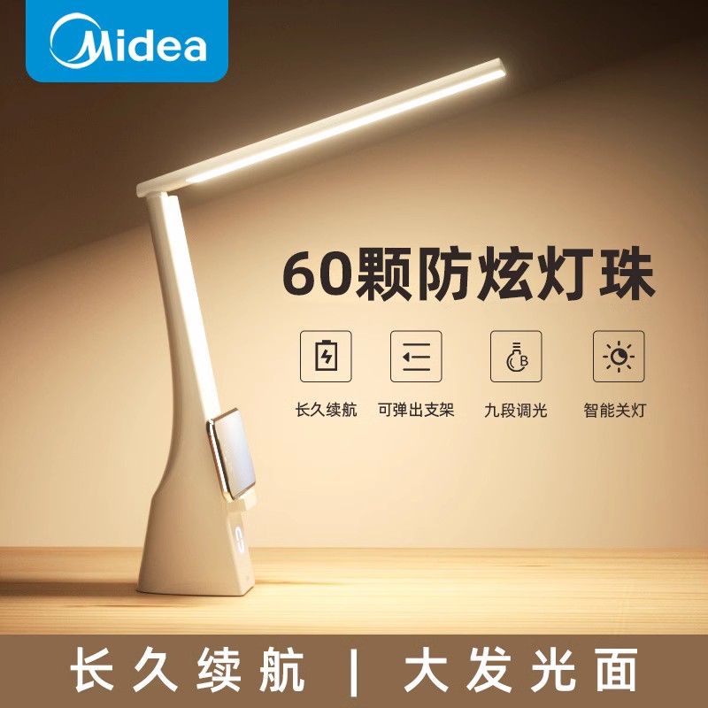美的台灯宿舍大学生儿童护眼学习专用充电大容量超长续航寝室台灯