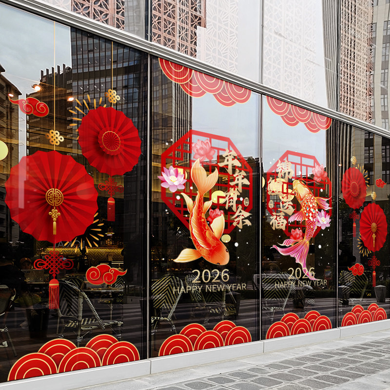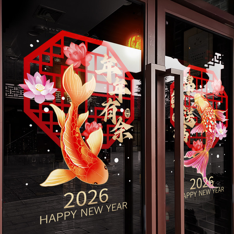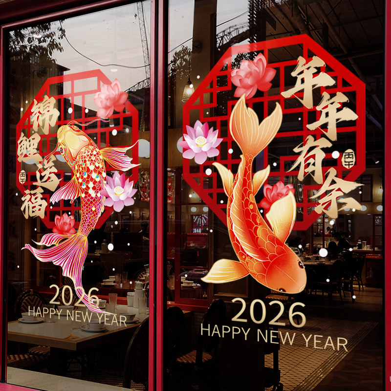 新年装饰窗花马年春节锦鲤送福窗贴2026过年门店橱窗静电玻璃贴纸