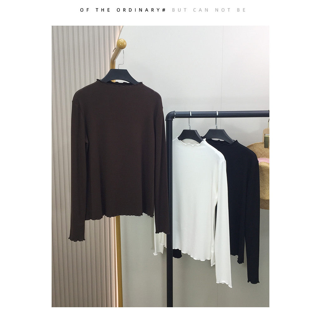 微胖妹妹mm秋装加大码打底衫时尚女装高弹木耳边遮肚子经典针织衫