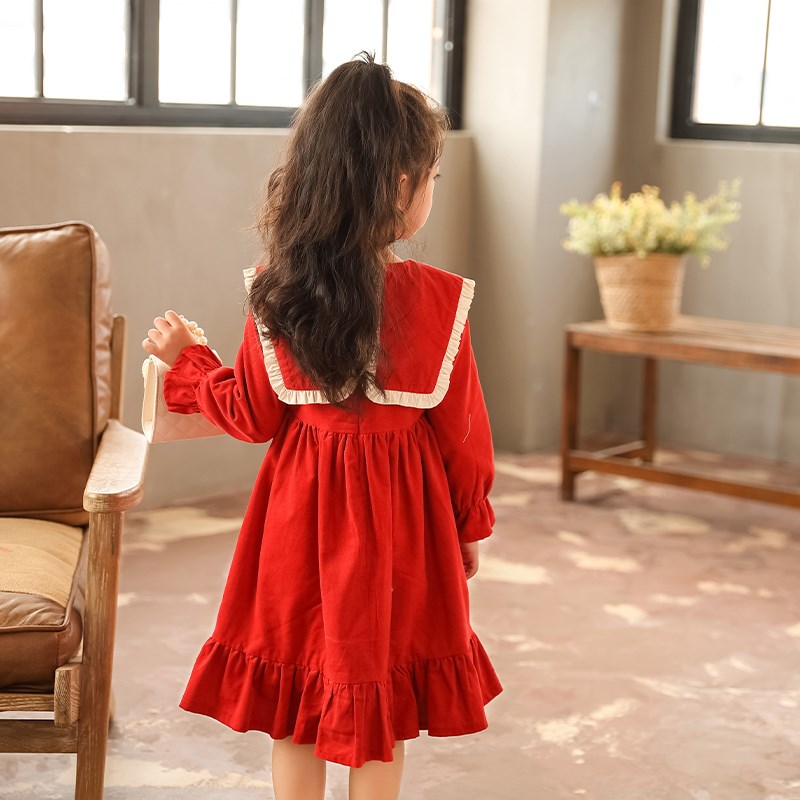 女童秋装长袖连衣裙2024新款公主裙秋季中大童学院风灯芯绒连衣裙
