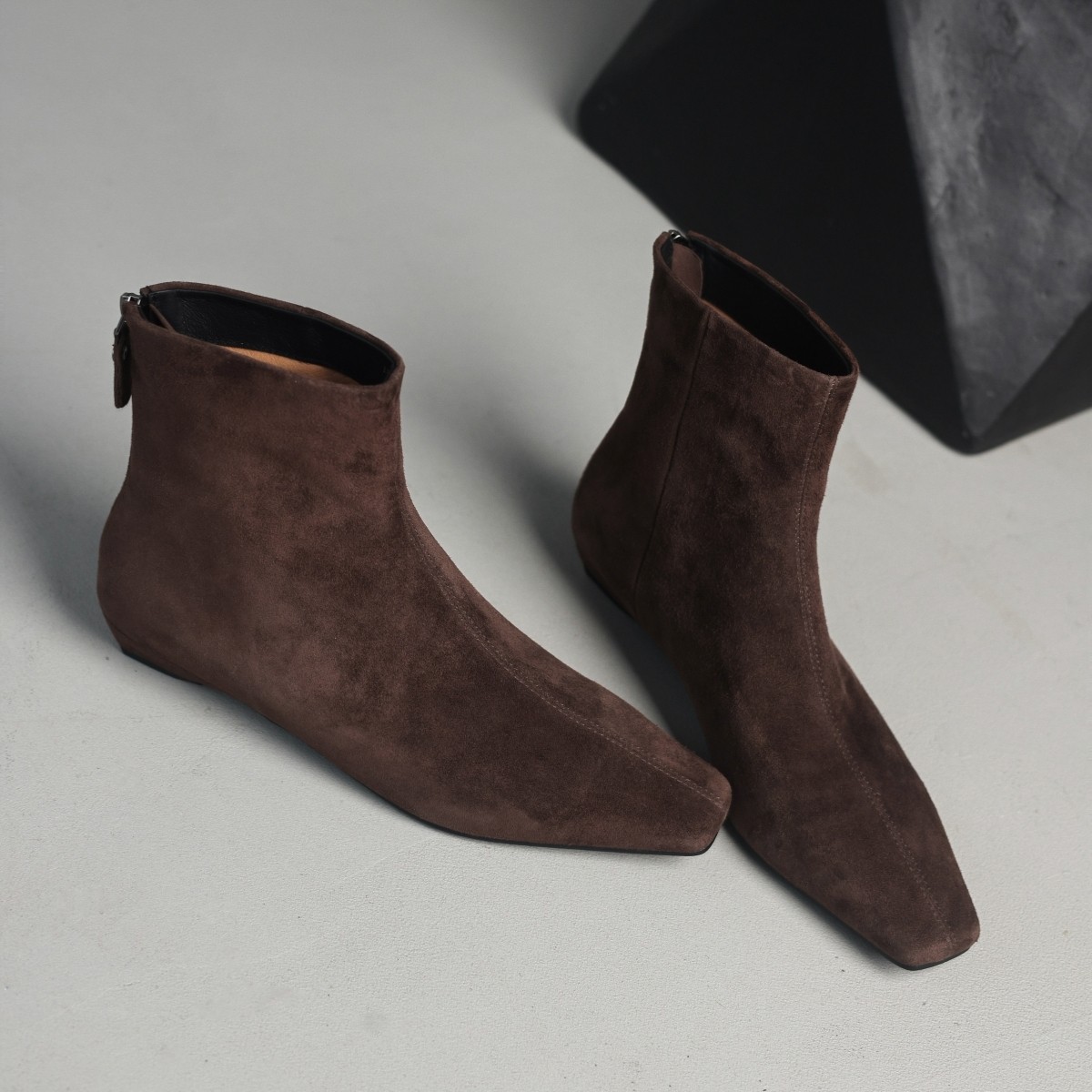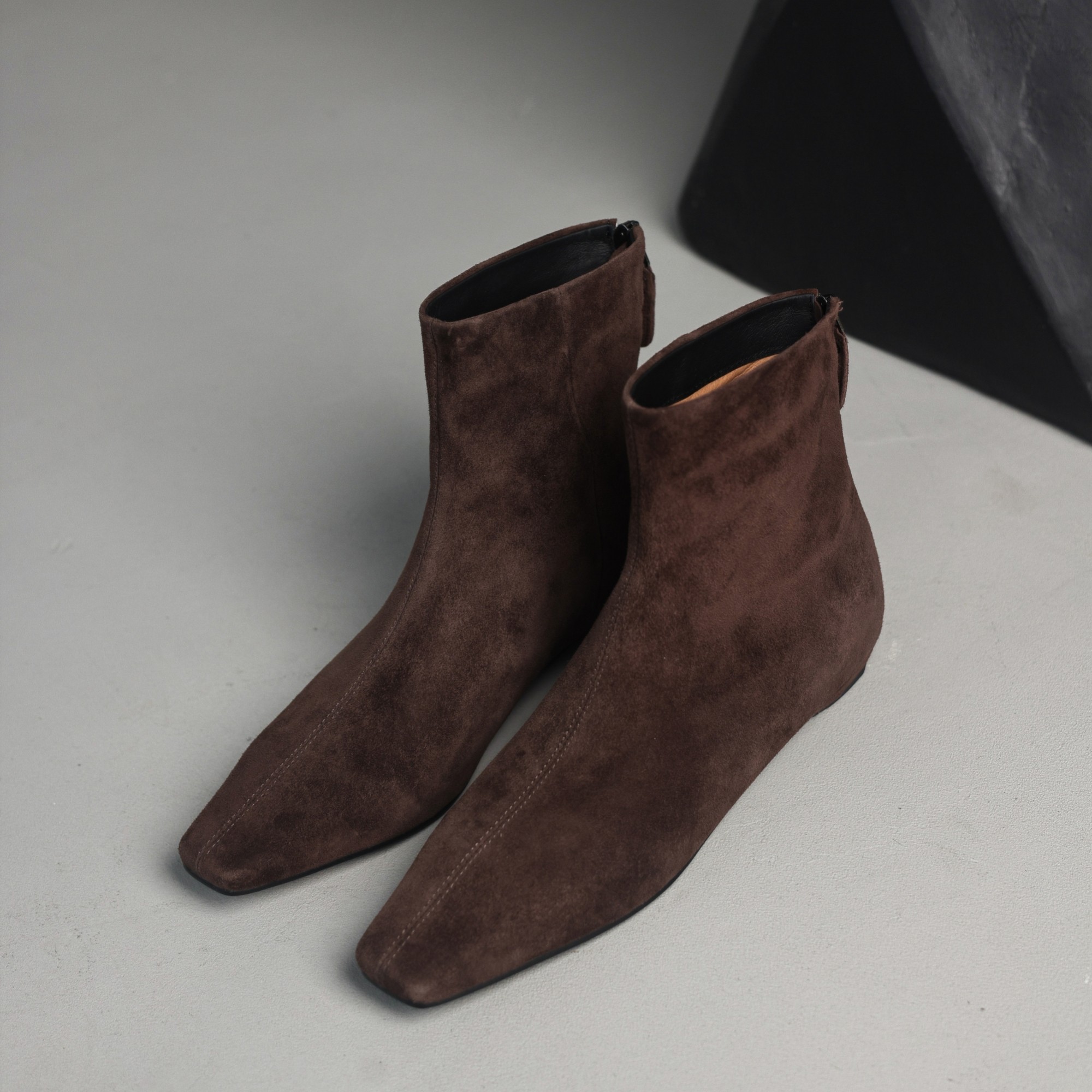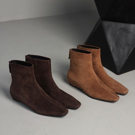MIA羊反皮x牛皮里 法式小方头小短靴瘦瘦靴后拉链2025年冬季韩系