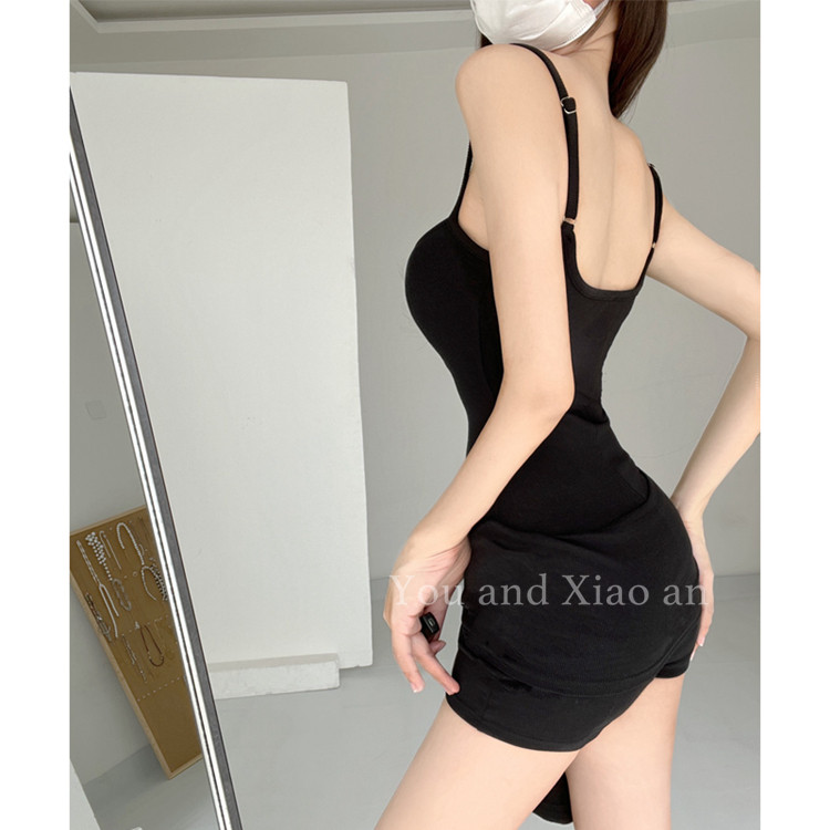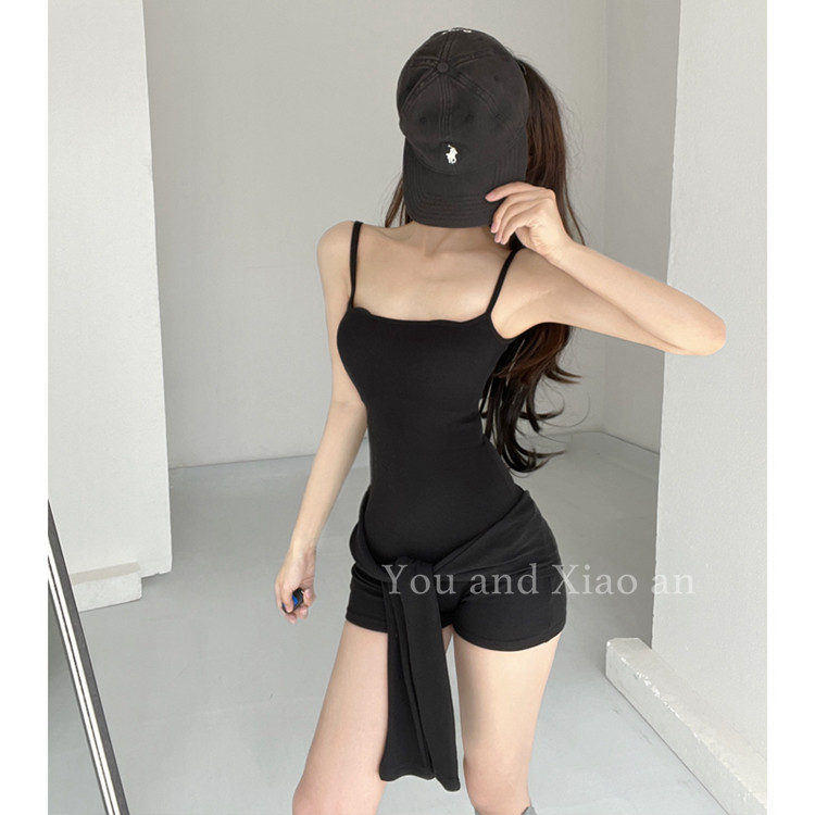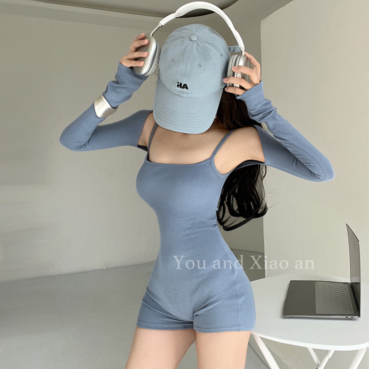 美式运动辣妹吊带连体裤性感瑜伽连体衣短裤女春夏长袖开衫两件套