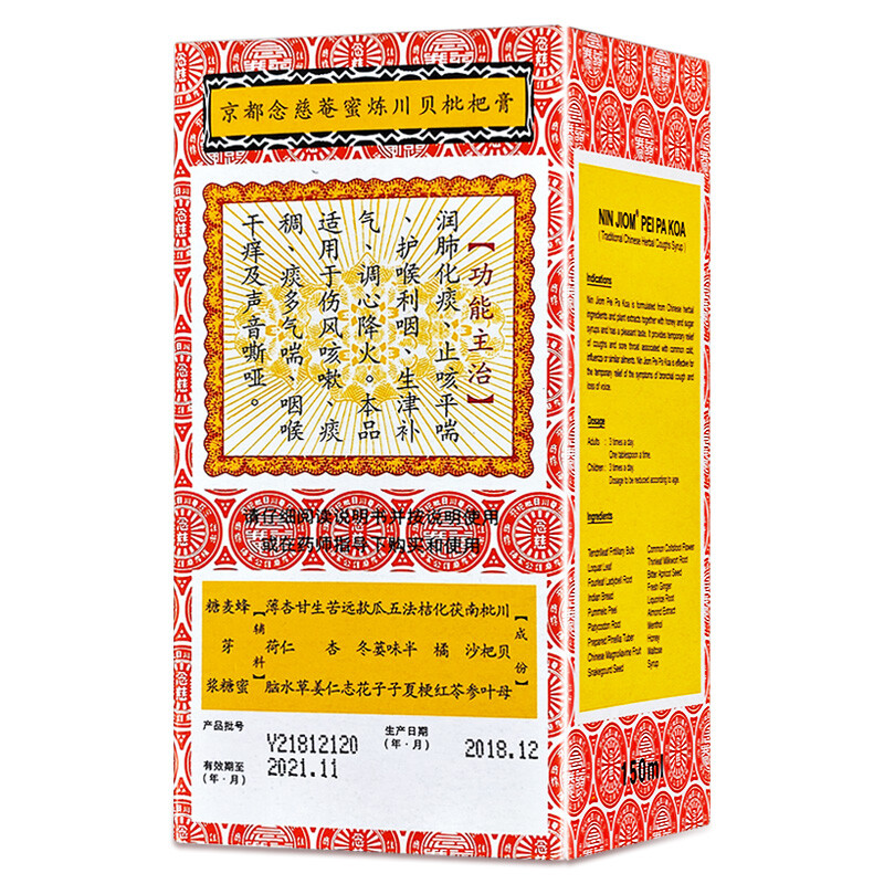【京都念慈菴】京都念慈菴蜜炼川贝枇杷膏150ml*1瓶/盒