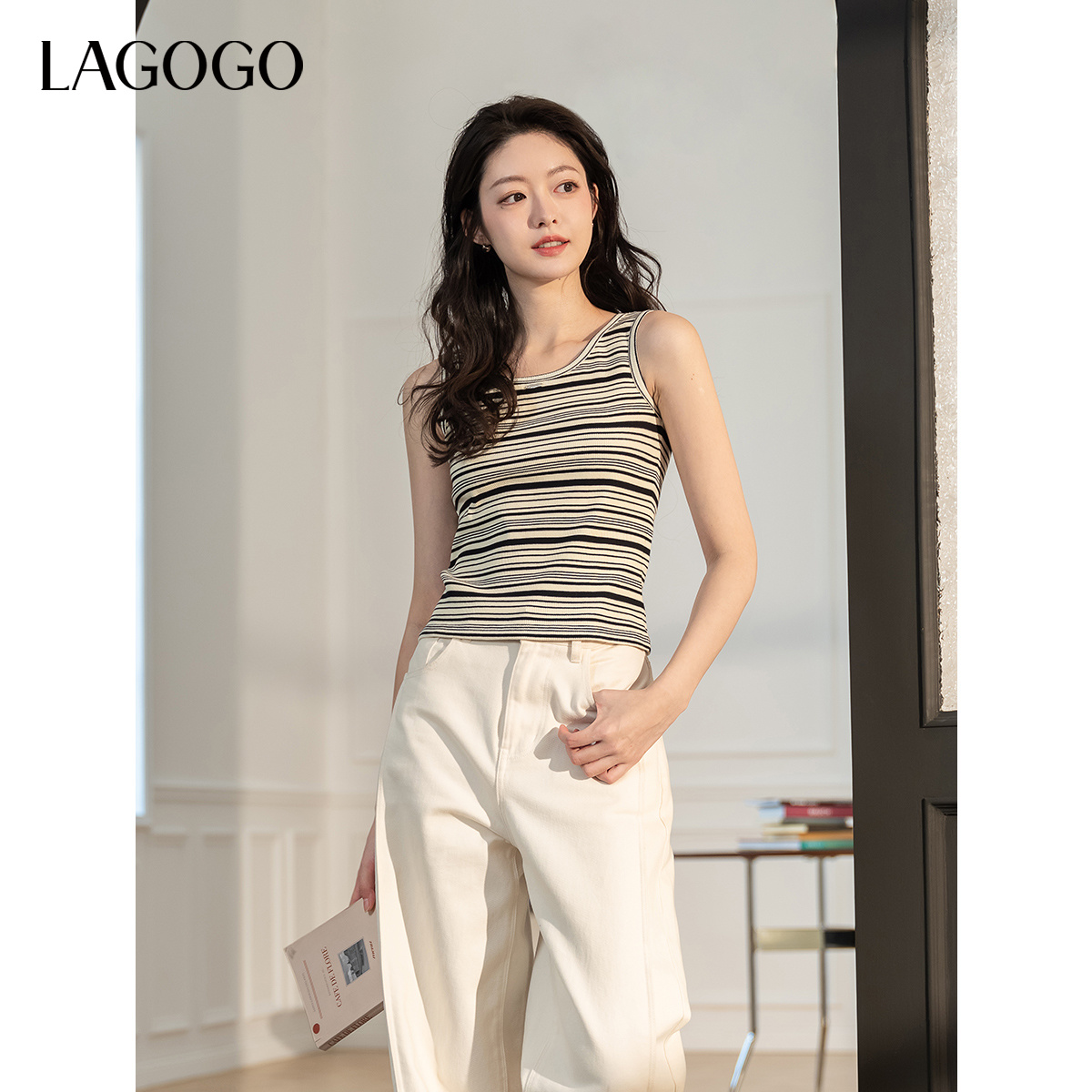lagogo拉谷谷2025年新款舒适条纹修身背心女OASS221G11