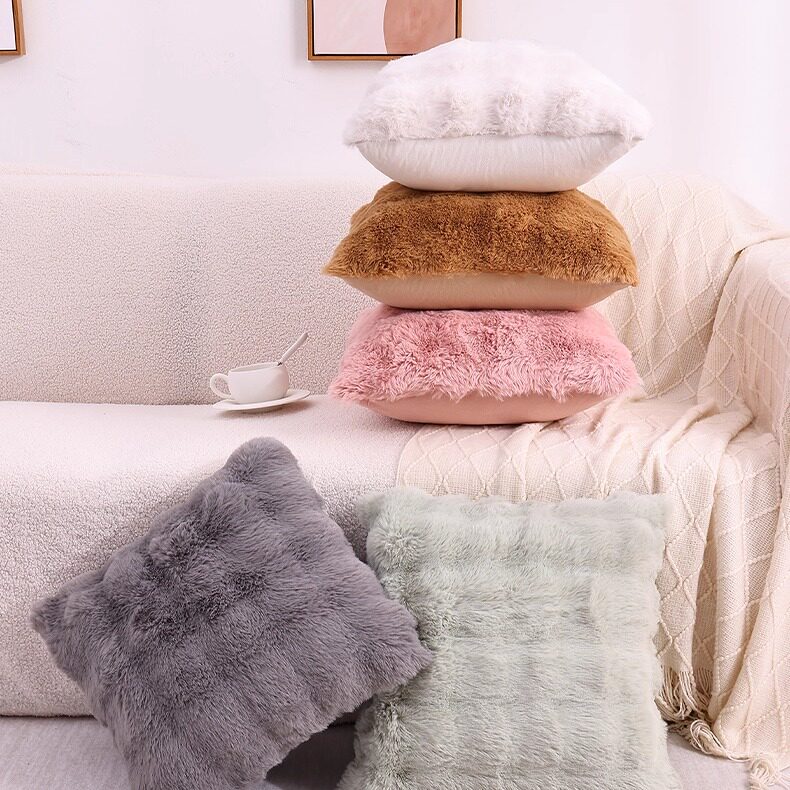 兔毛柔软双面玫瑰绒抱枕套客厅沙发抱枕办公室靠背垫床头大靠枕套