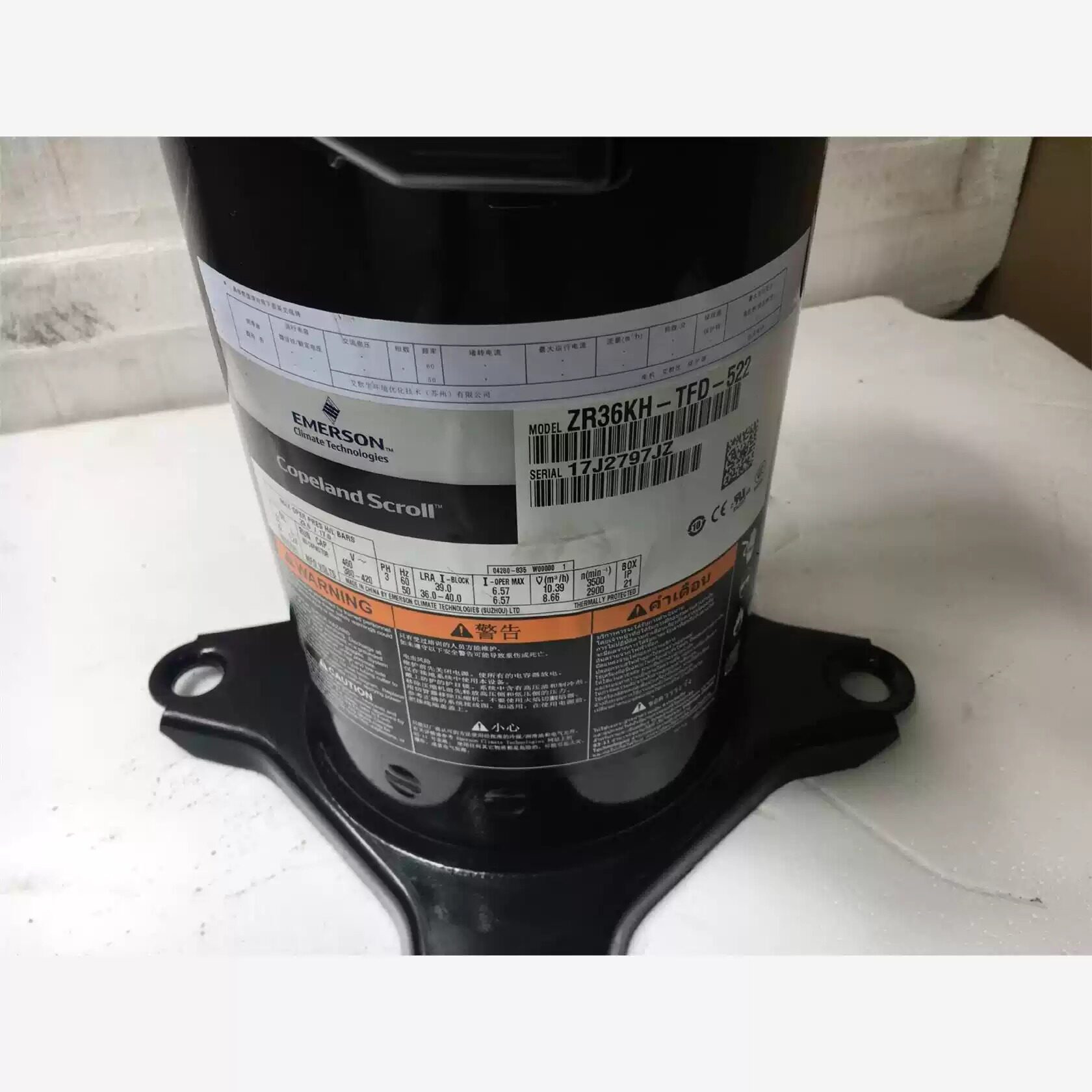 适用谷轮3P空气能热泵空调制冷压缩机ZR36KC-PFJ-522原装全新正品