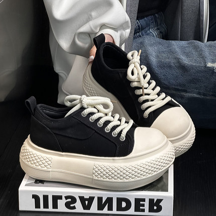 欧货牛仔帆布大头松糕厚底面包鞋女百搭小个子增高运动休闲鞋板鞋