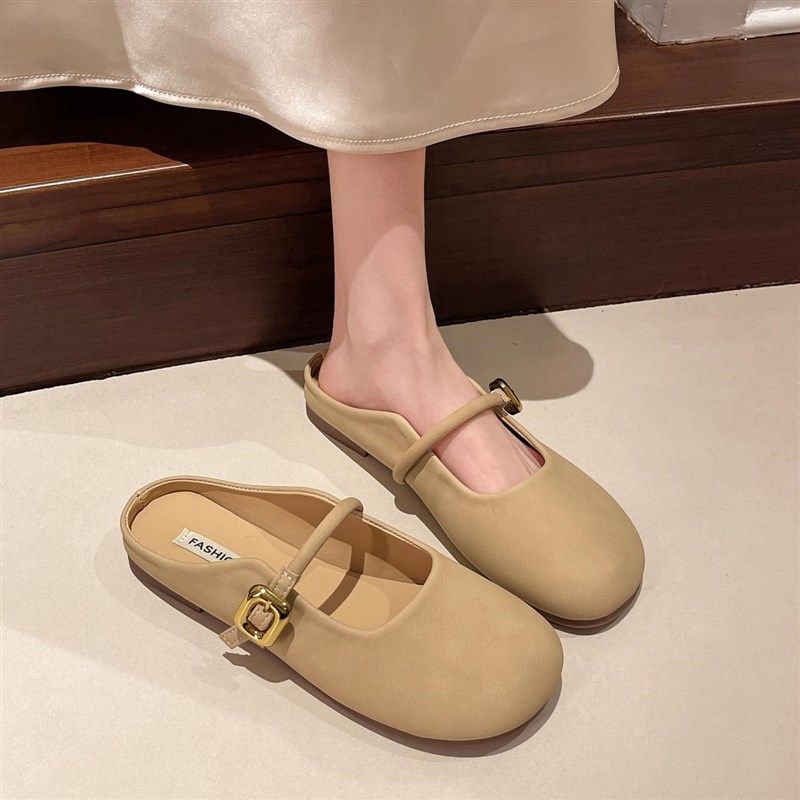 法式温柔包头半拖鞋女外穿2025新款春夏季平底孕妇一脚蹬半托凉鞋