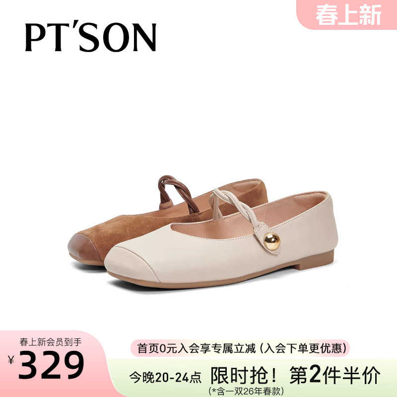 商场同款百田森牛皮玛丽珍鞋女早秋美拉德平底芭蕾鞋小香风单鞋