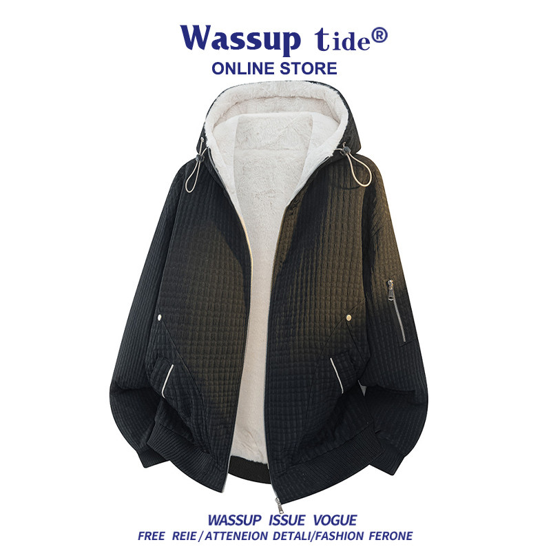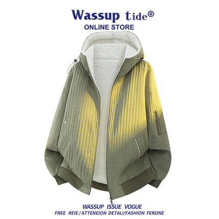 WASSUP TIDE羊羔绒连帽棉衣男冬季加绒加厚新款棉服棉袄外套衣服