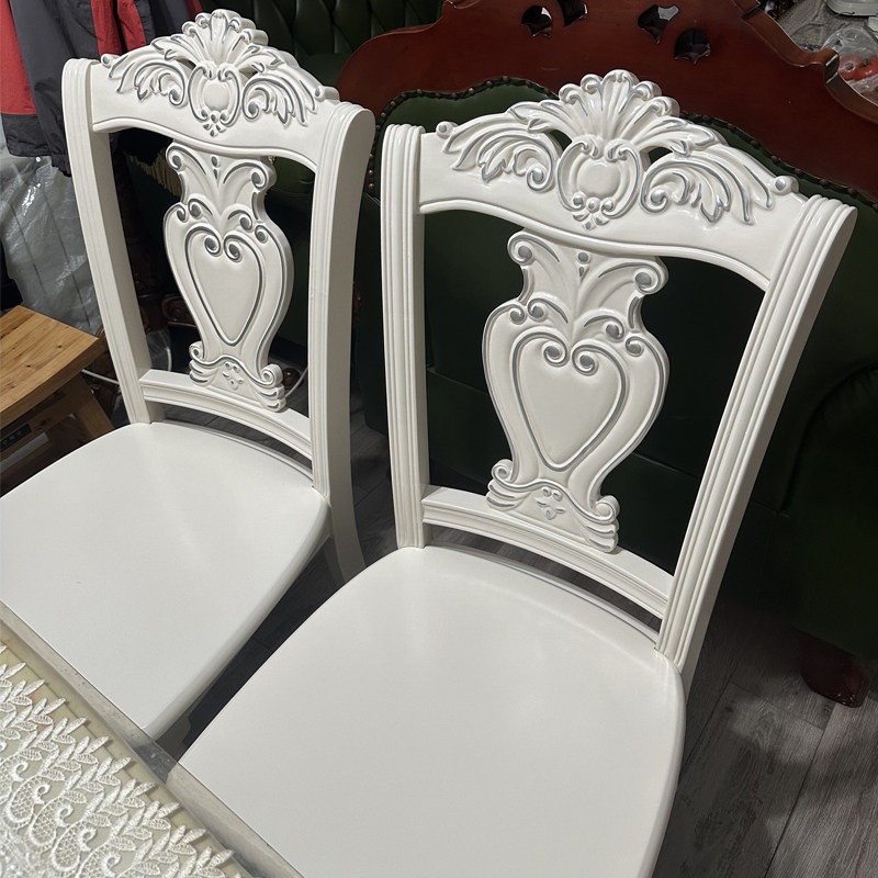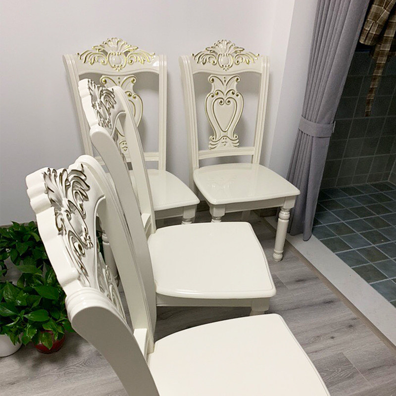 餐椅橡木椅子靠背凳欧式家用实木雕花餐桌椅现代简约餐厅白色凳子