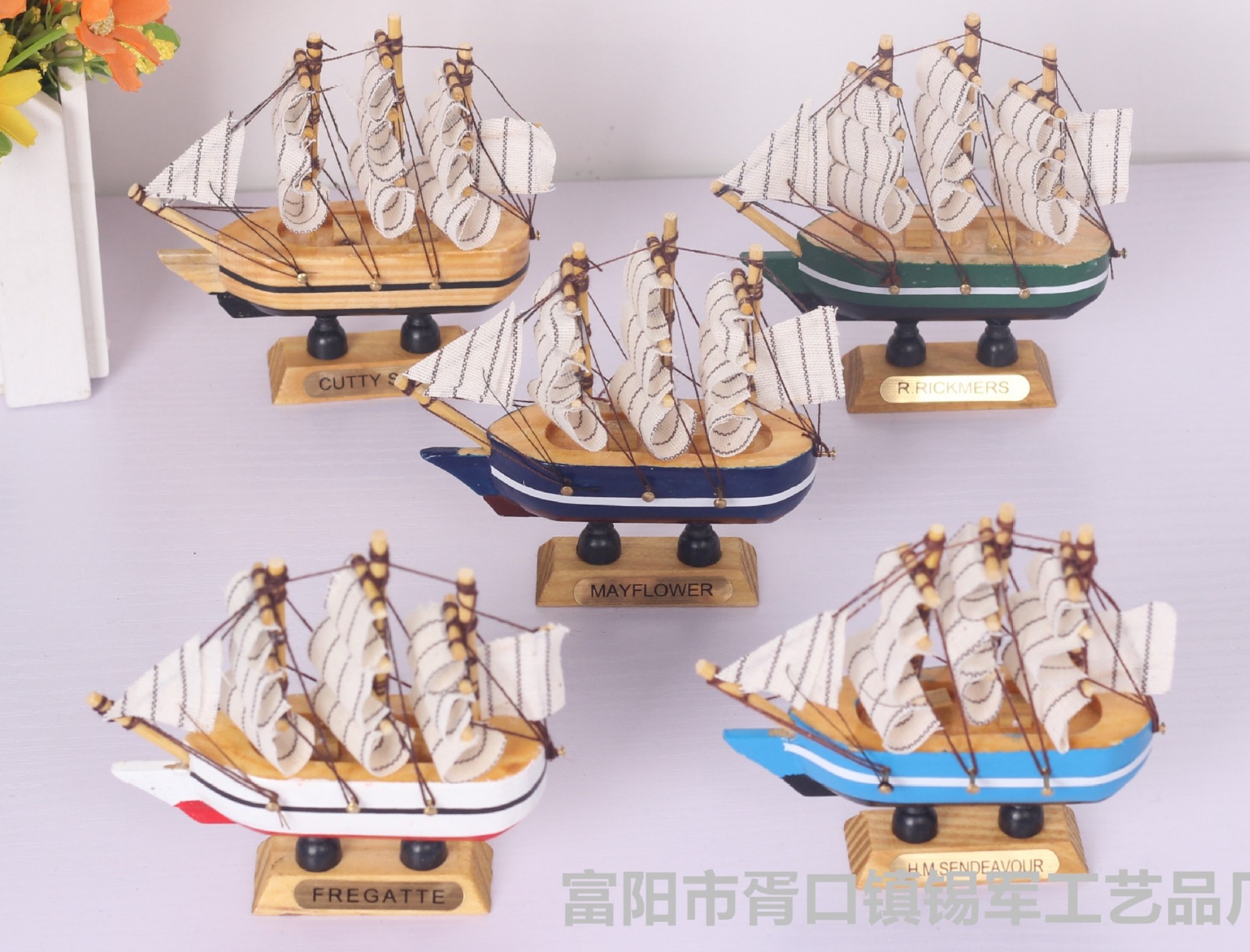 生日蛋糕装饰摆件地中海装饰木质帆船模型摆件帆船手工创意礼品