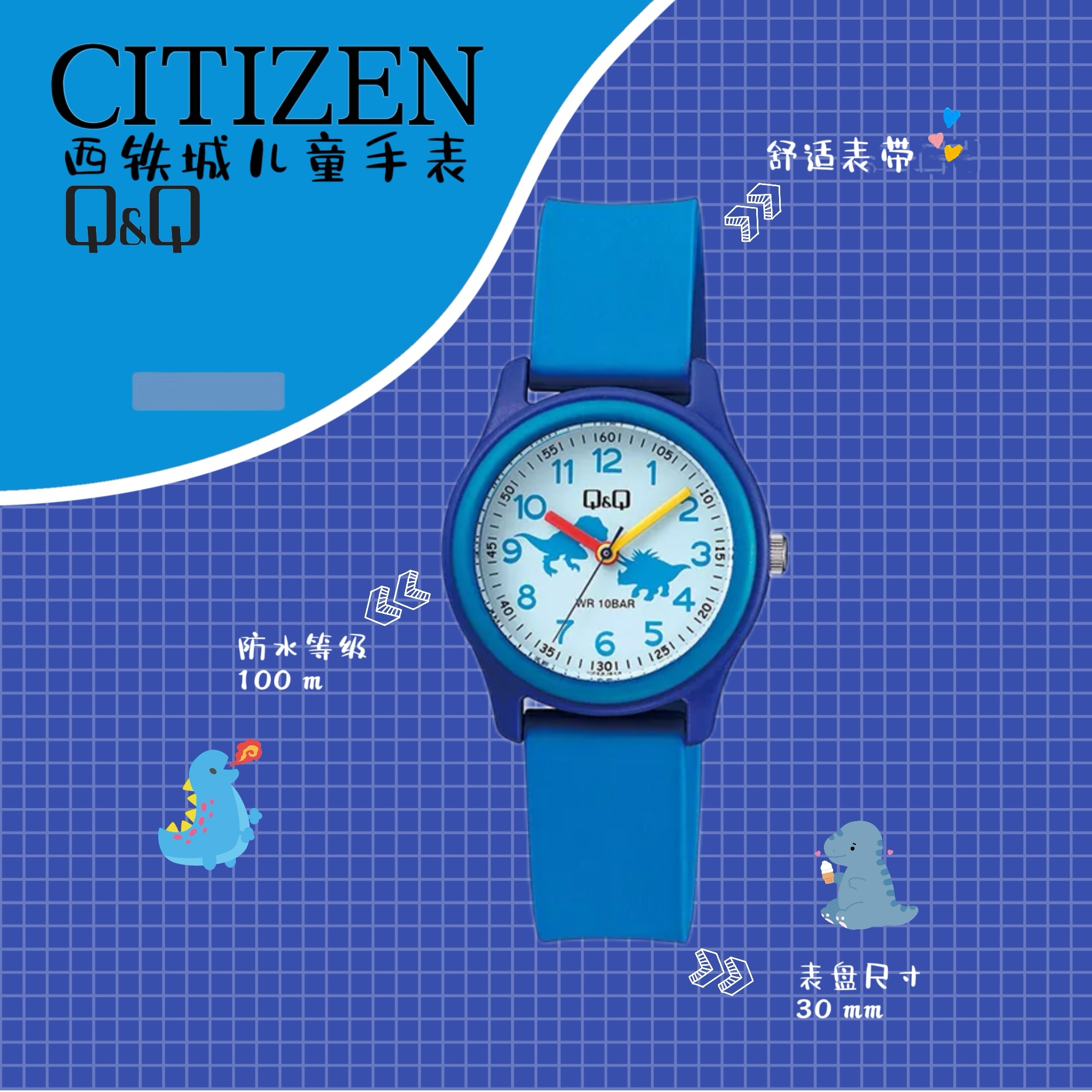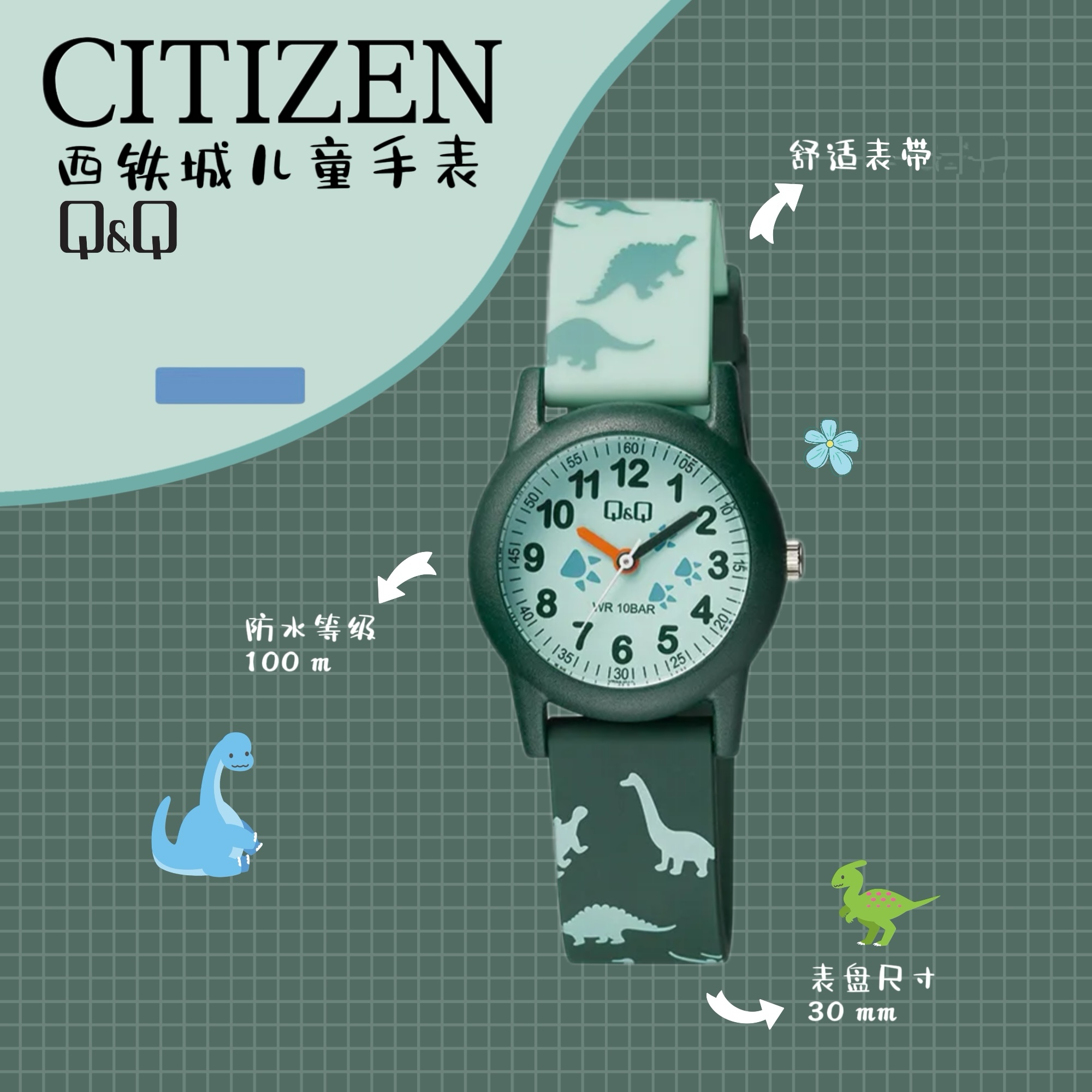 西铁城Q&Q儿童手表侏罗纪恐龙公园系列男孩指针儿童电子石英手表