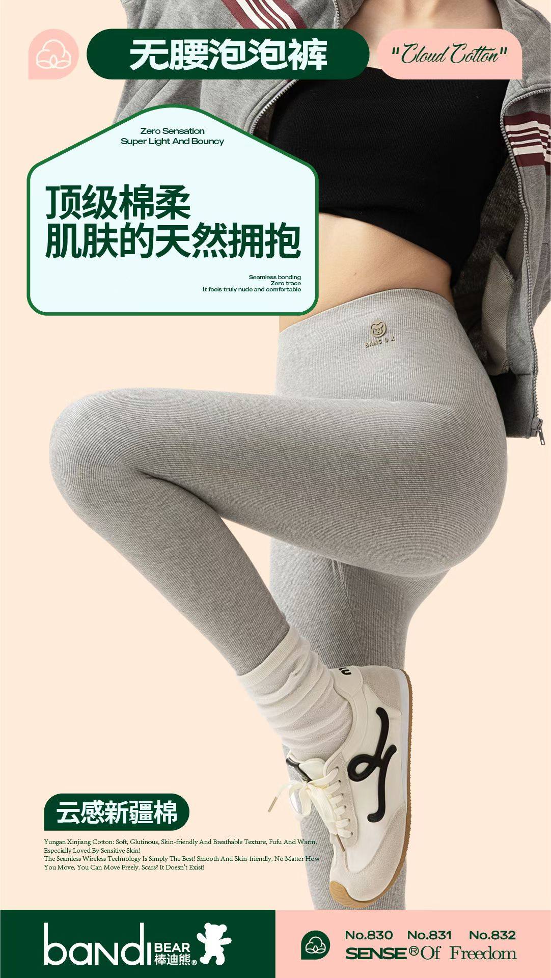 秋冬款无腰无痕螺纹裤暖绒打底女外穿棉竖条收腹打底鲨鱼裤瑜伽裤