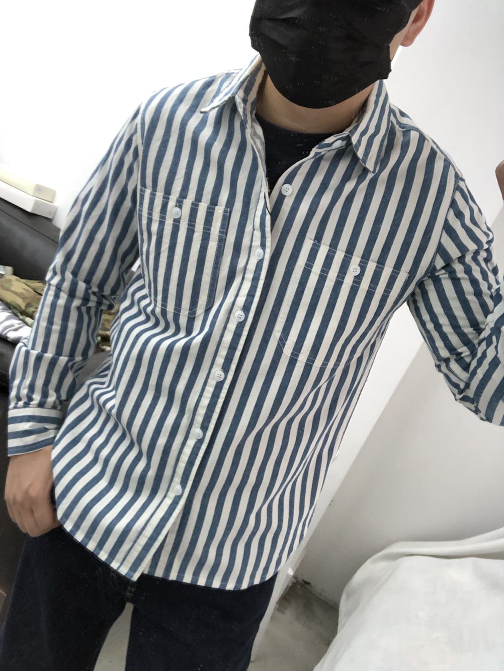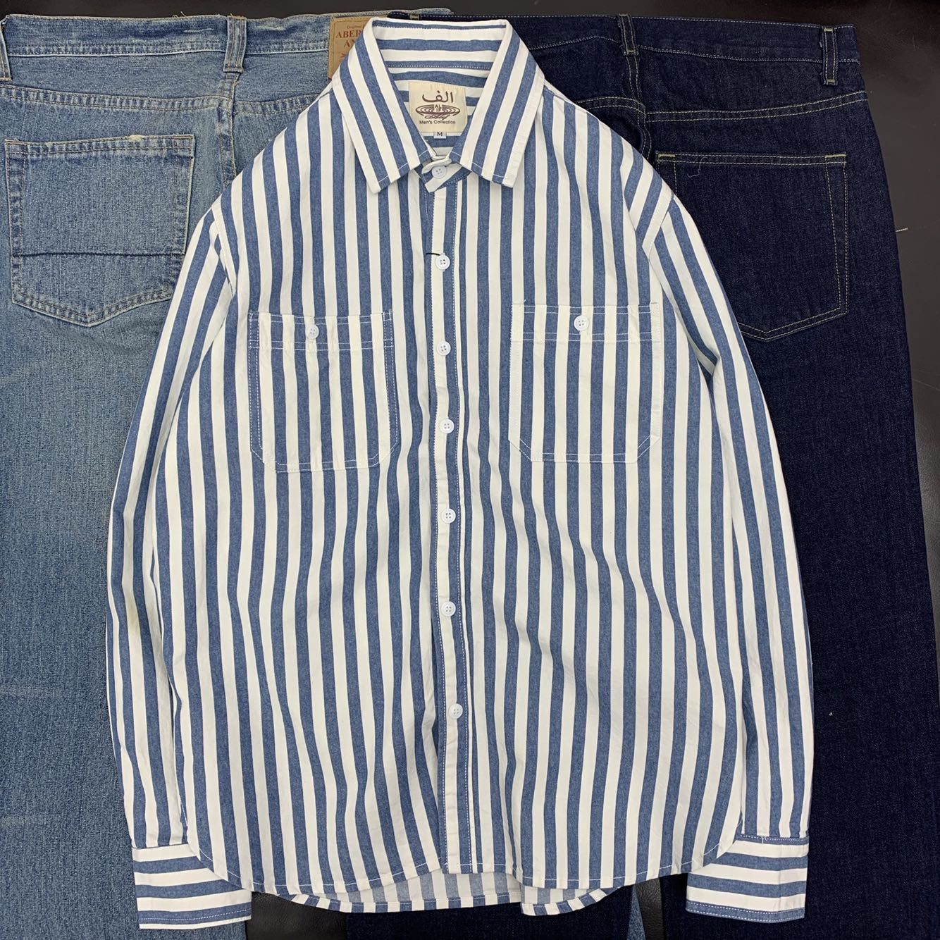 英伦简约条纹 男士衬衫纯棉舒适 日系复古 原宿学院风格宽松衬衣