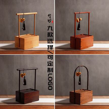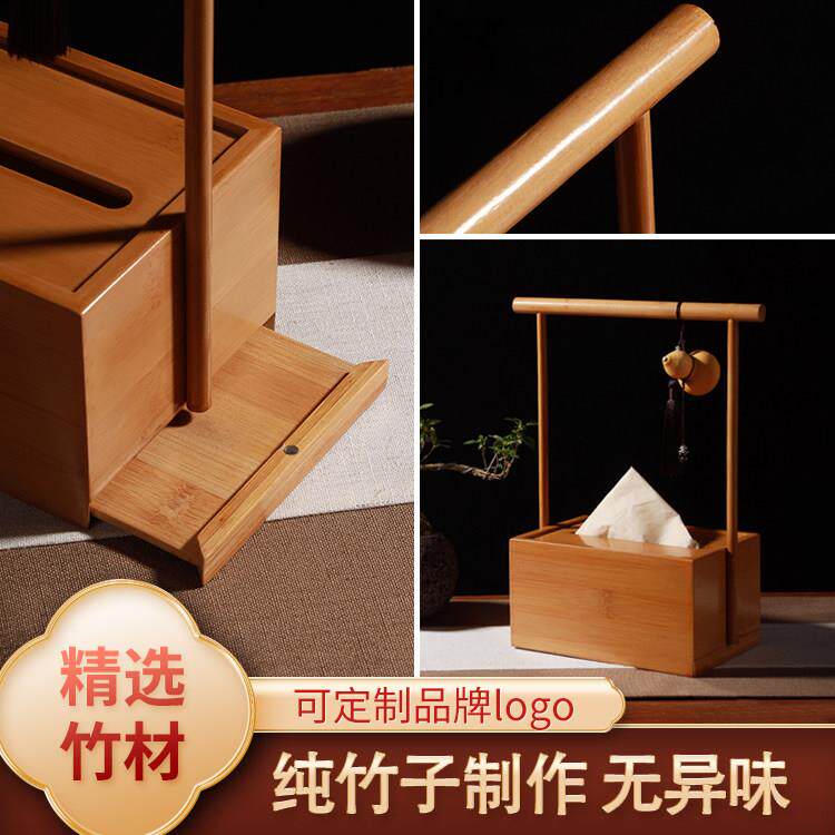 新中式竹制纸巾盒客厅家居实木紫竹创意提卫生纸盒轻奢覆古茶室定