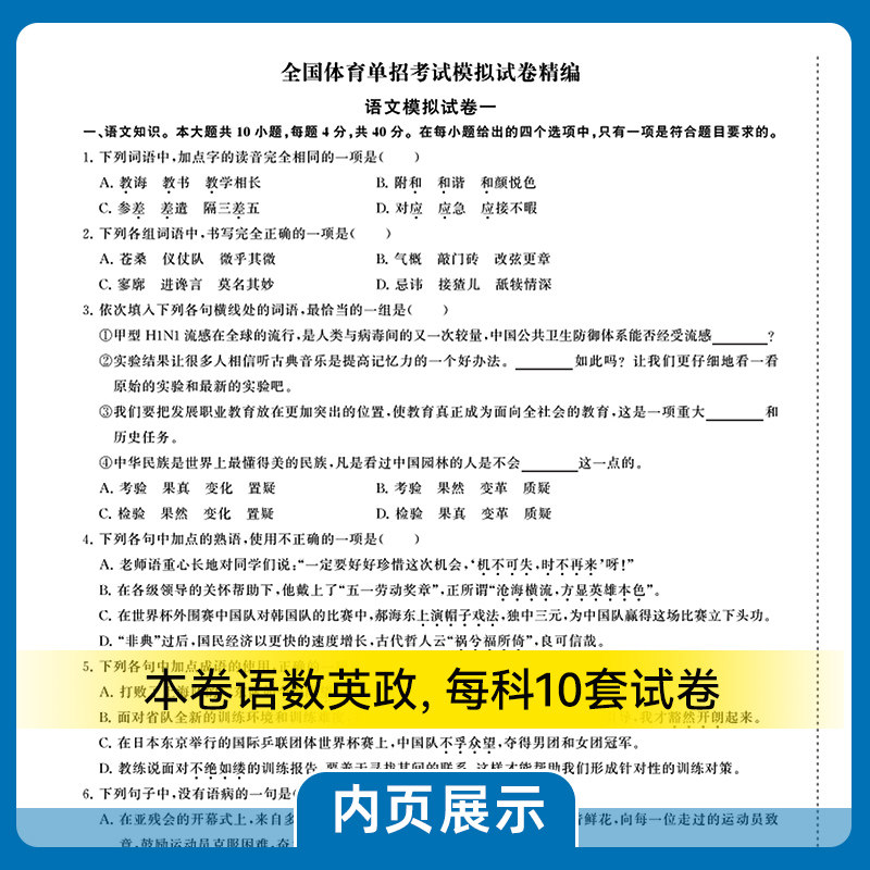 2026全国体育单招考试模拟试卷精编语数英政合订本知识点归纳复习教材资料高职单招资料高考复习用书同步训练辅导考试模拟测试卷
