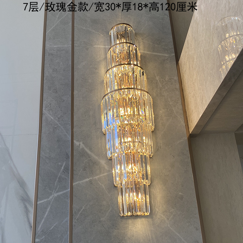 大壁灯客厅背景墙长条水晶灯不锈钢酒店别墅复式楼梯挂灯110-240V