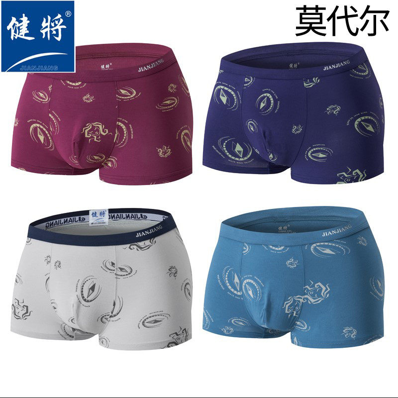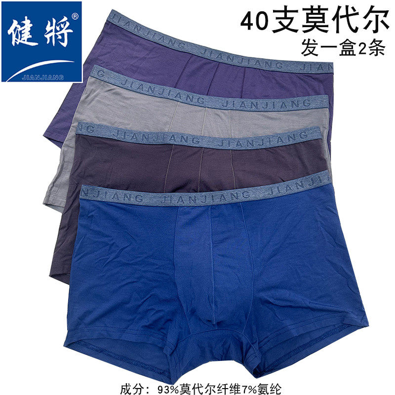 健将60支男士内裤莫代尔舒适透气面料宽边平角裤中腰纯色男式弹性