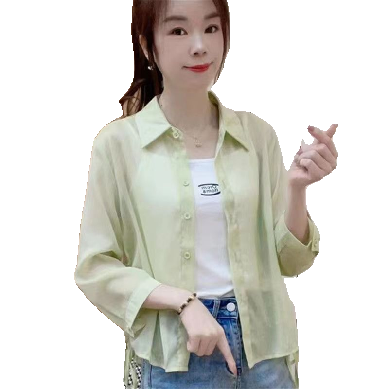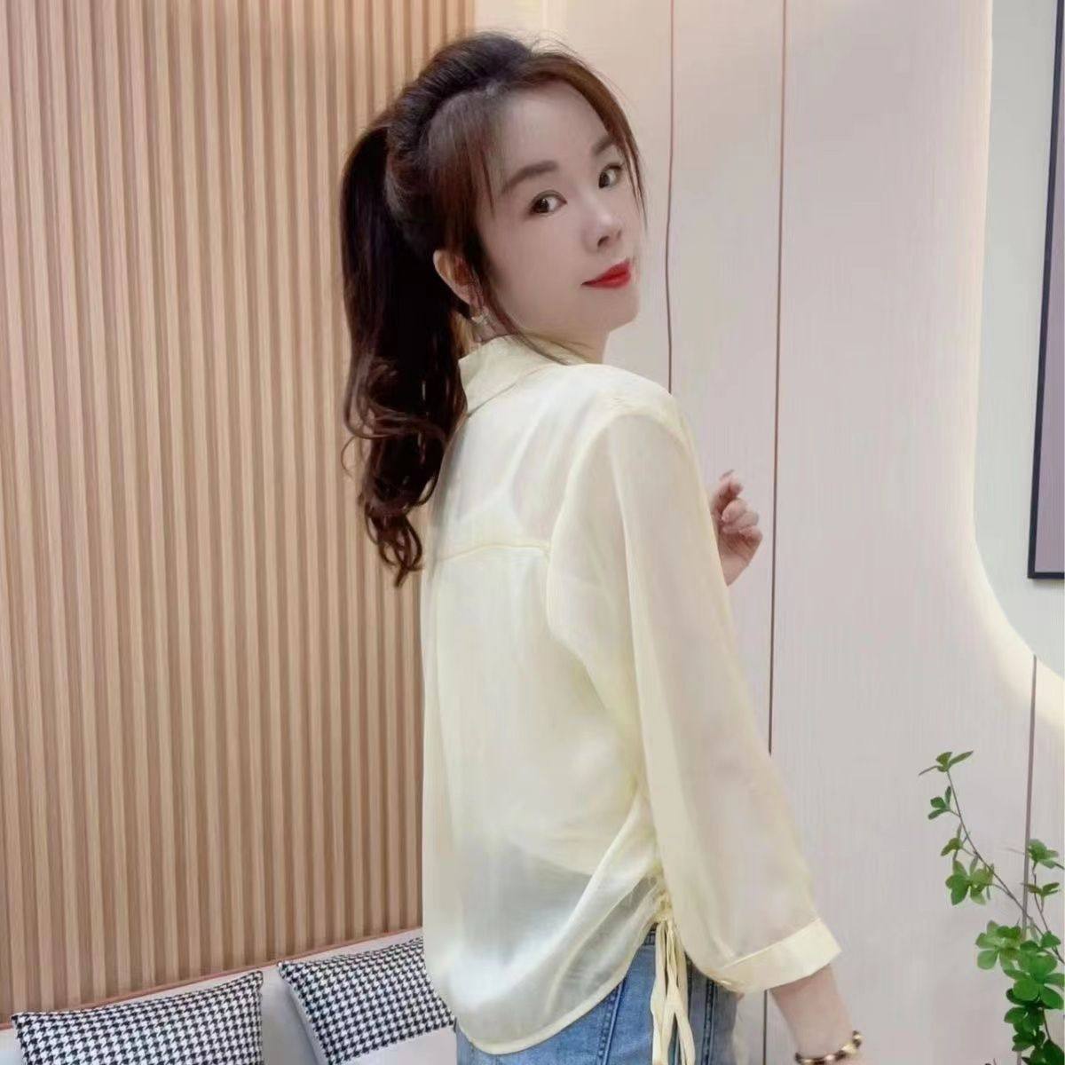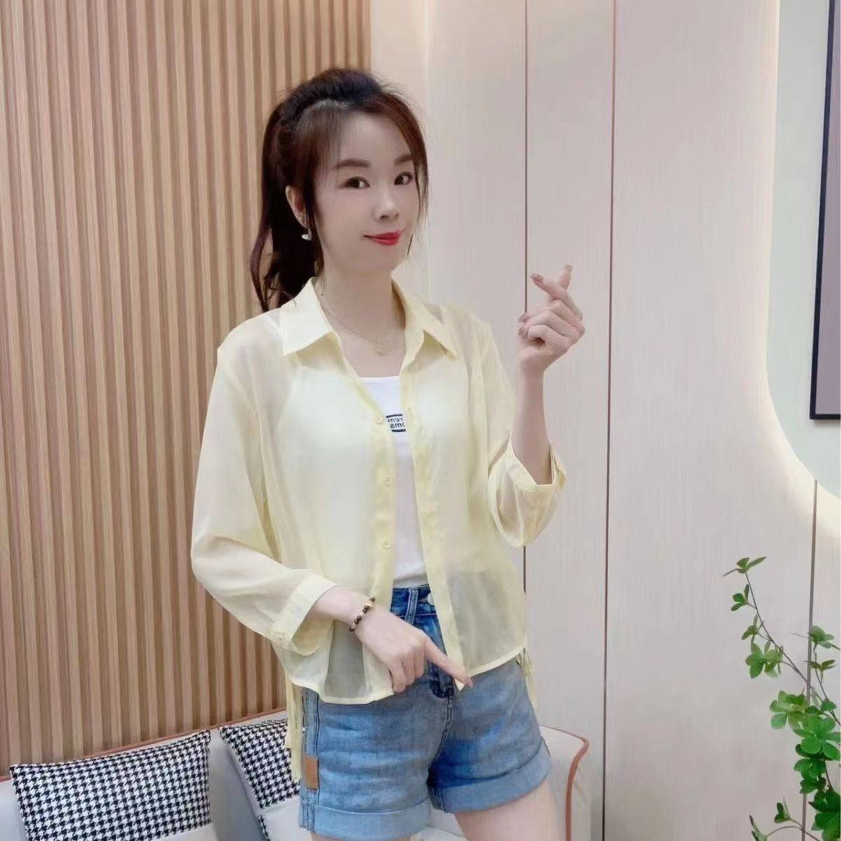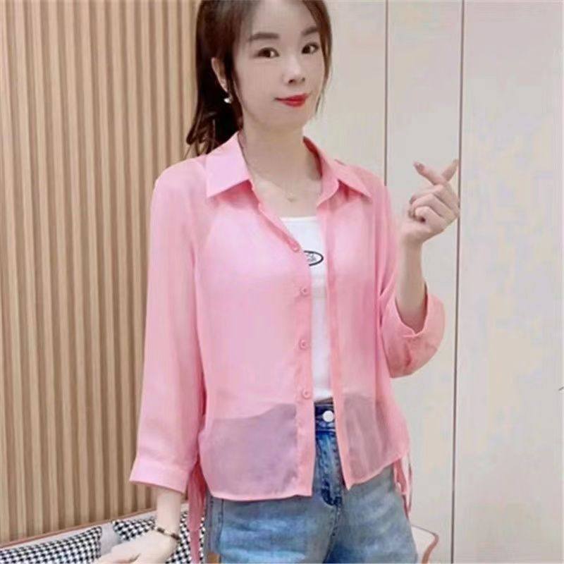 夏季新款绑带防晒衬衫女外搭配吊带七分袖上衣时尚短款防晒衣外套