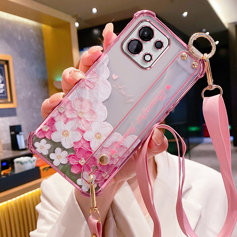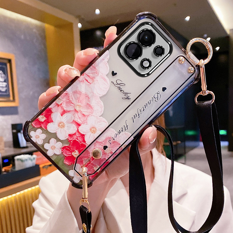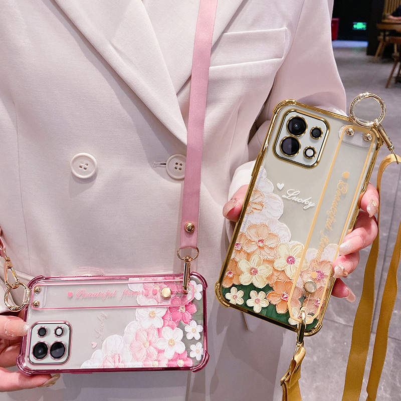 艾欧芭适用oppoA6手机壳oppo保护A6保护套5G镜头膜全包PLS120防摔透明软壳opa6油画花朵65G斜挎挂绳外壳新款