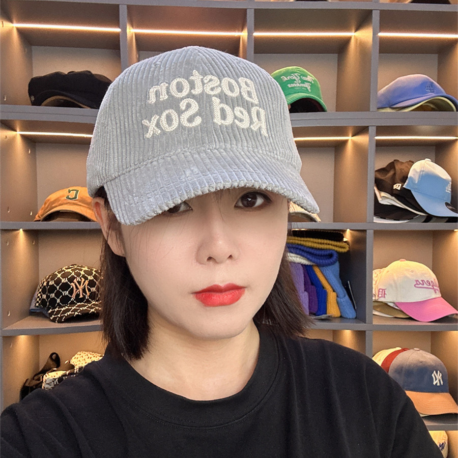 正品MLB帽子2022新款秋冬灯芯绒条绒NY洋基队棒球帽保暖鸭舌帽女