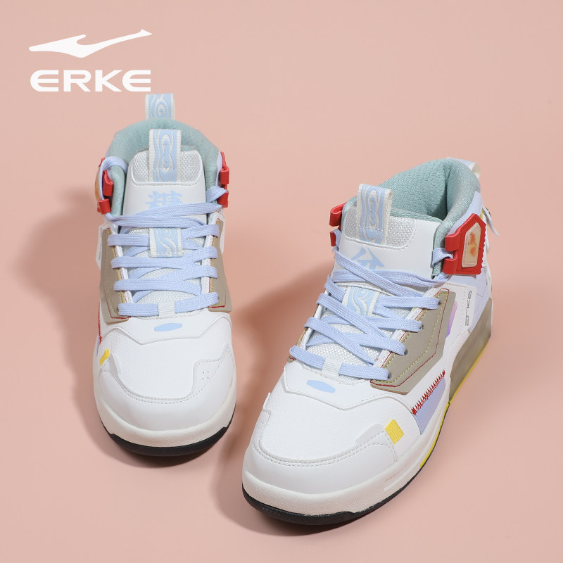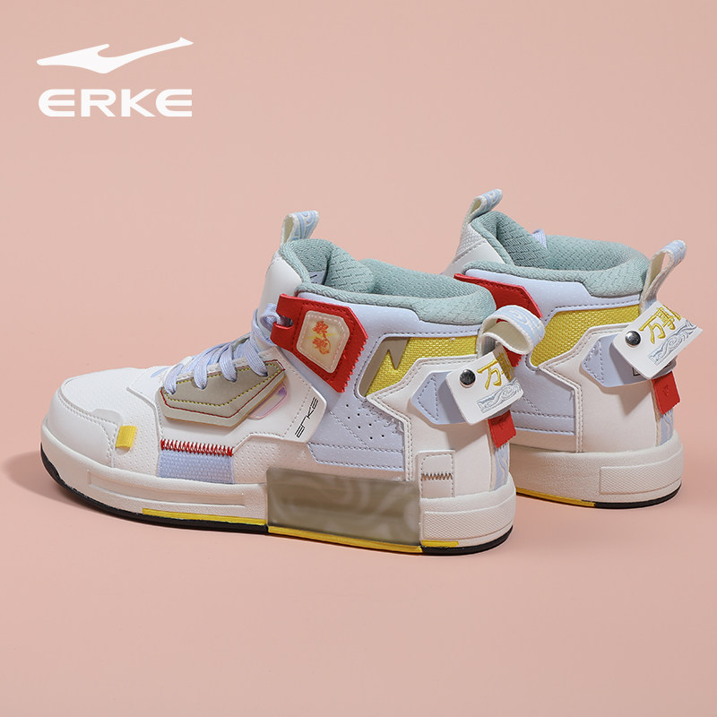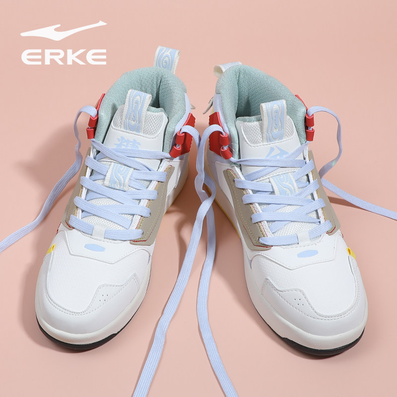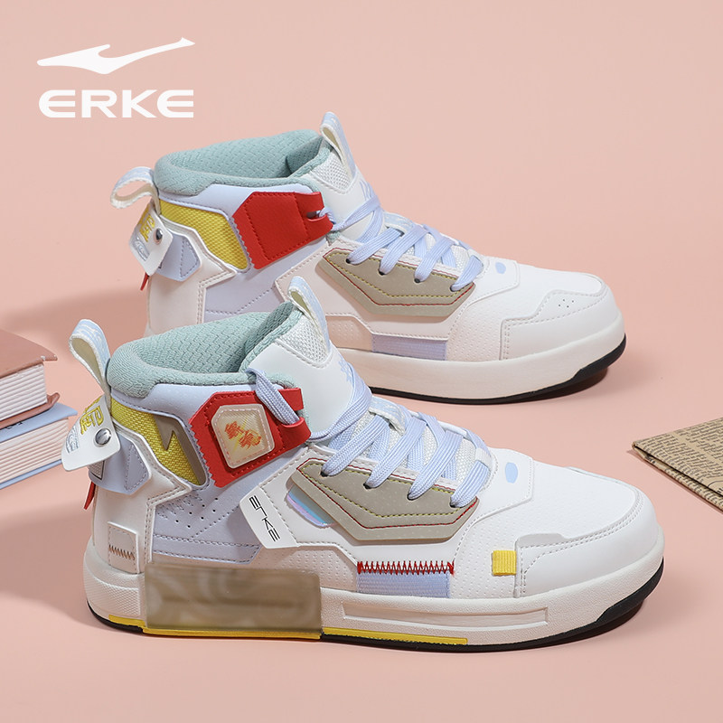 银魂鸿星尔克奇弹女鞋冬季新款潮流百搭滑板鞋皮面保暖高帮运动鞋