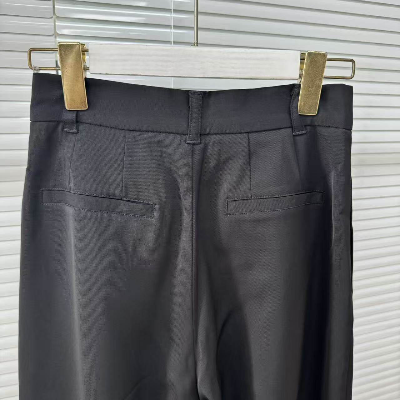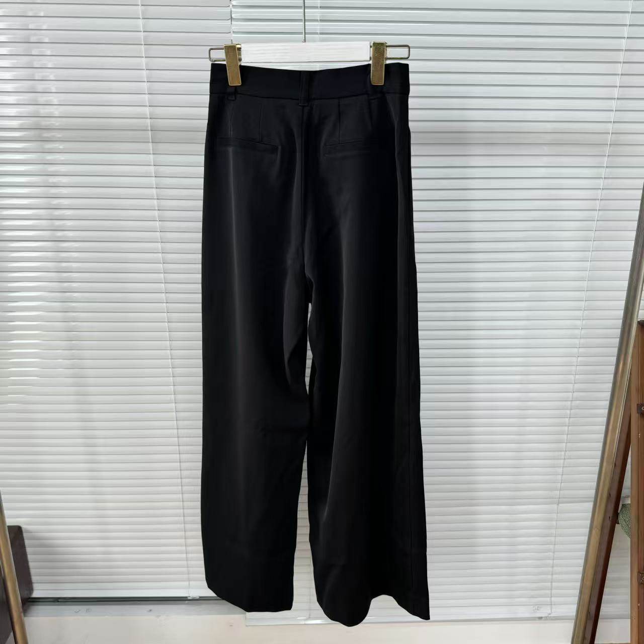 高级感高腰黑色阔腿西装面料秋季压褶百搭瘦长裤25090745