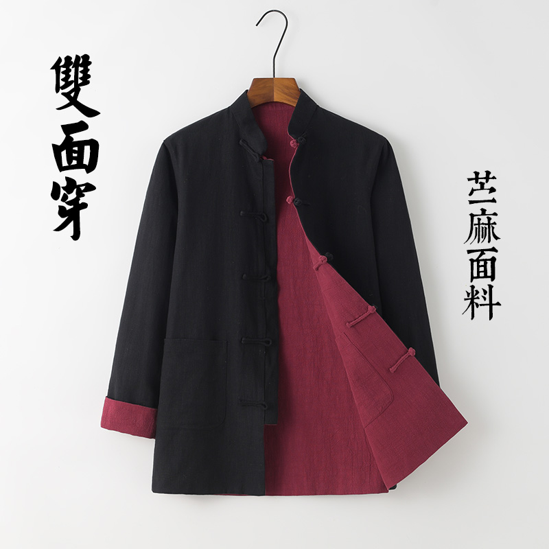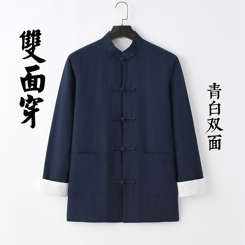 中国风唐装男外套长袖上衣休闲盘扣汉服复古风双面穿亚麻中式男装