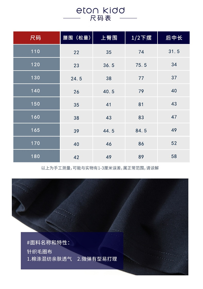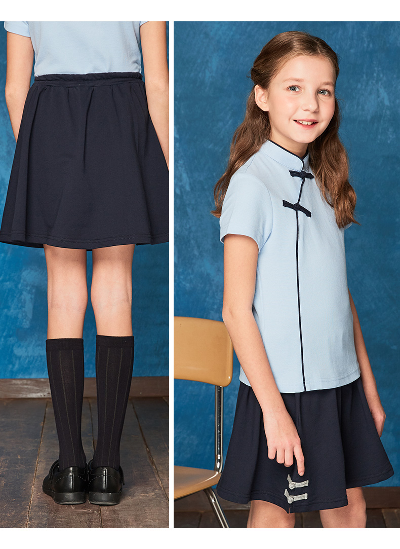 伊顿纪德校服新女生毛圈布侧缝盘扣装饰中式短裙半身裙16Q227惠