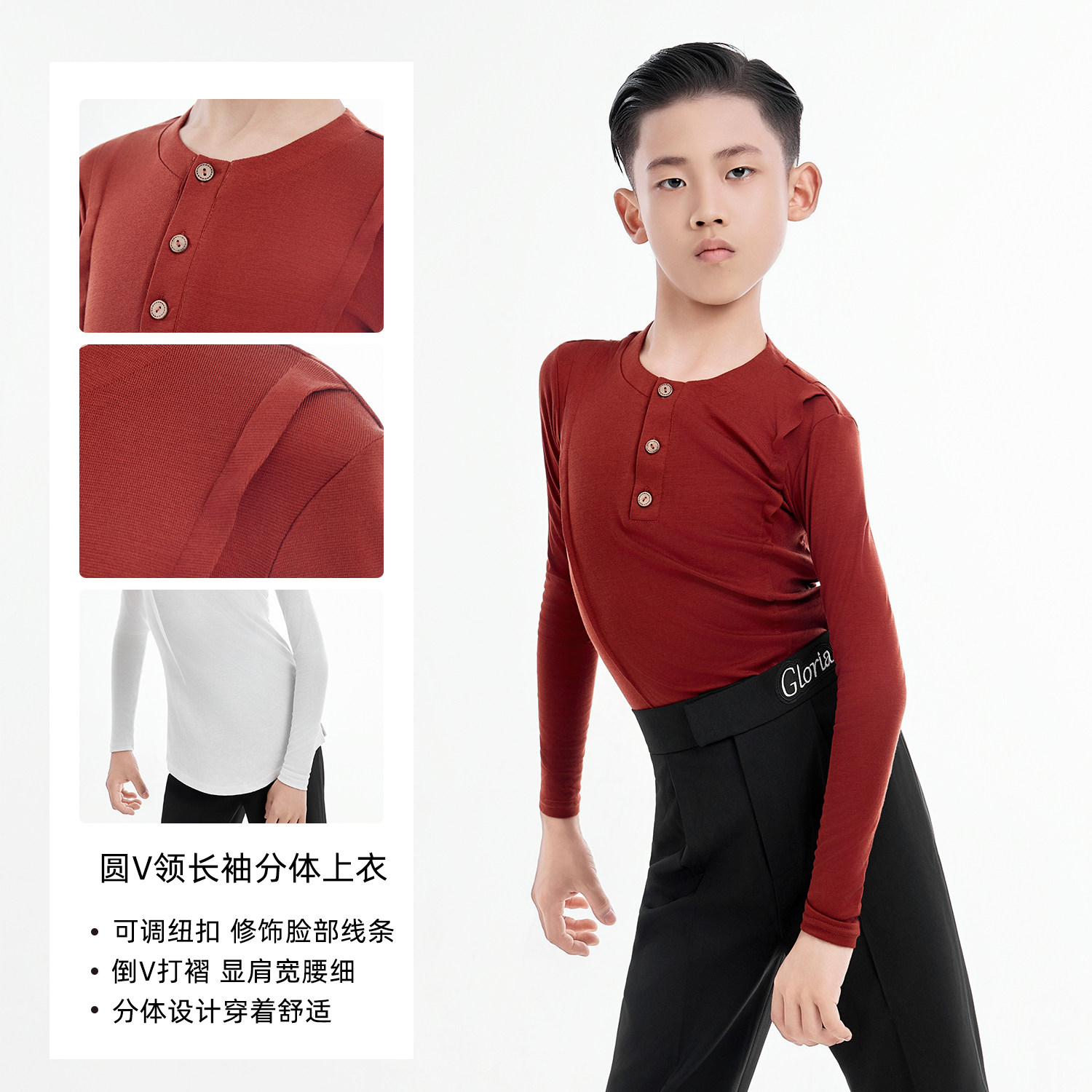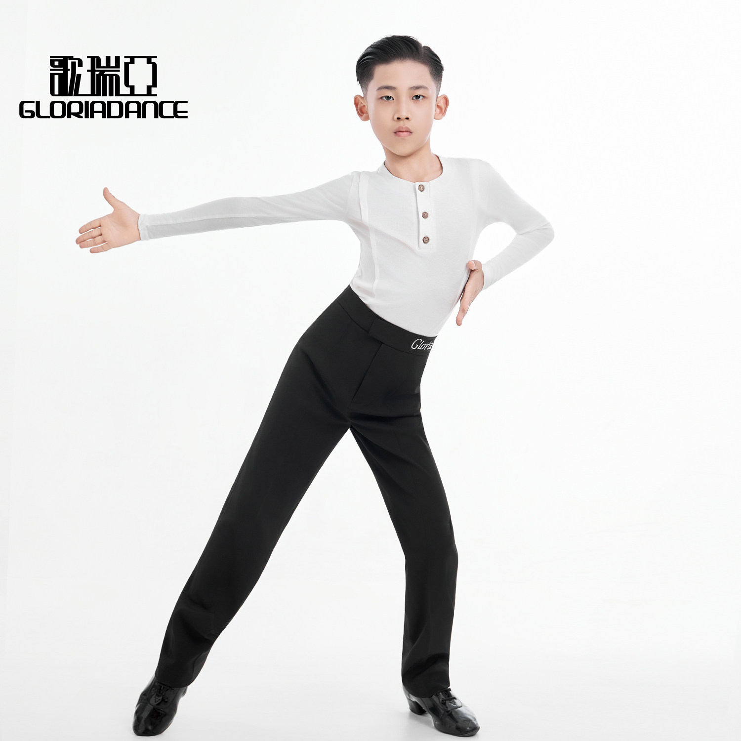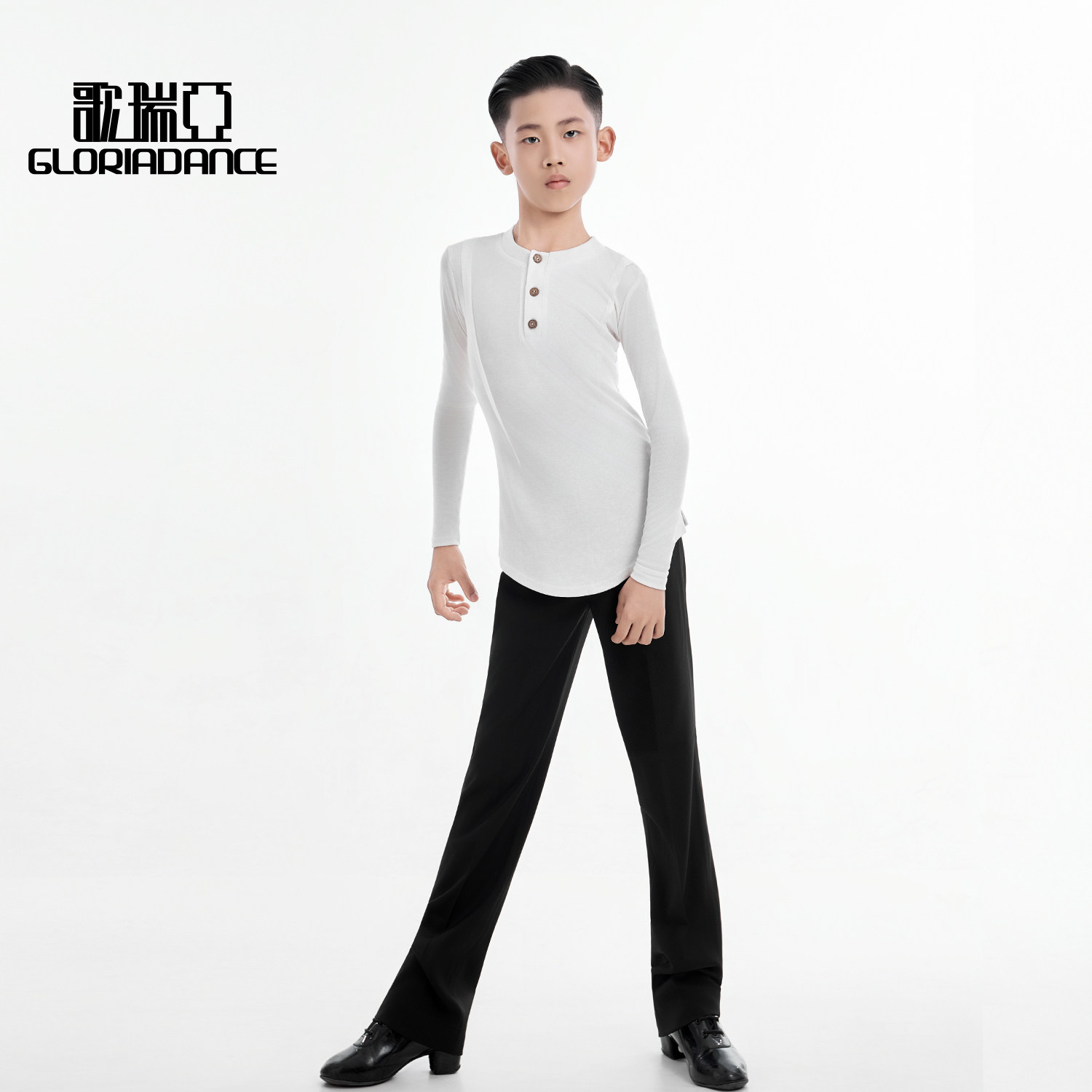 歌瑞亚新款男少儿舞服圆V领长袖拉丁舞上衣长裤套装演出服练习服