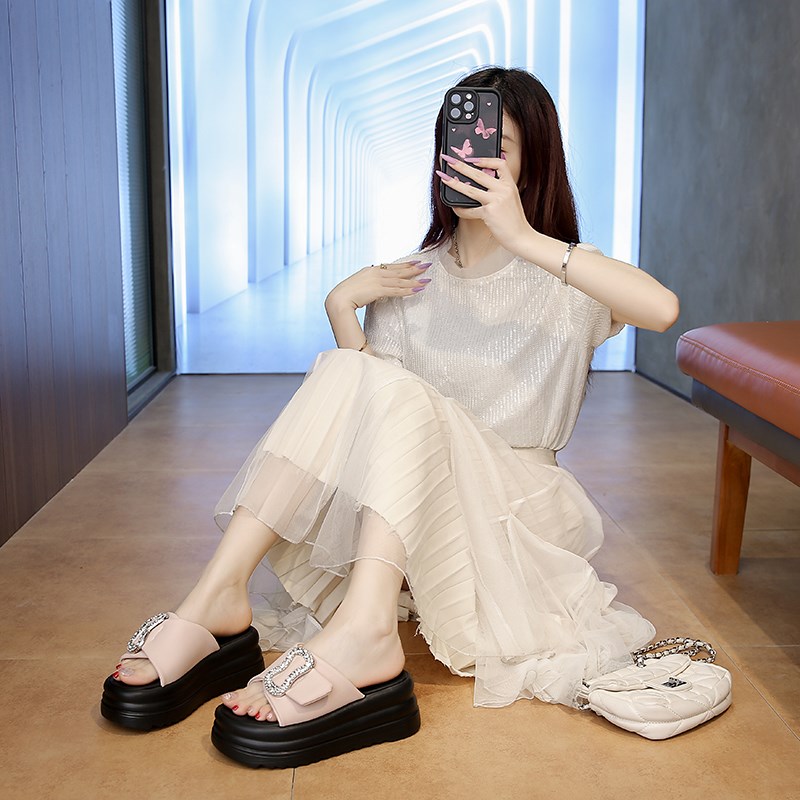 厚底松糕凉拖鞋女夏季外穿2025新款时尚增高高跟软底一字沙滩凉鞋