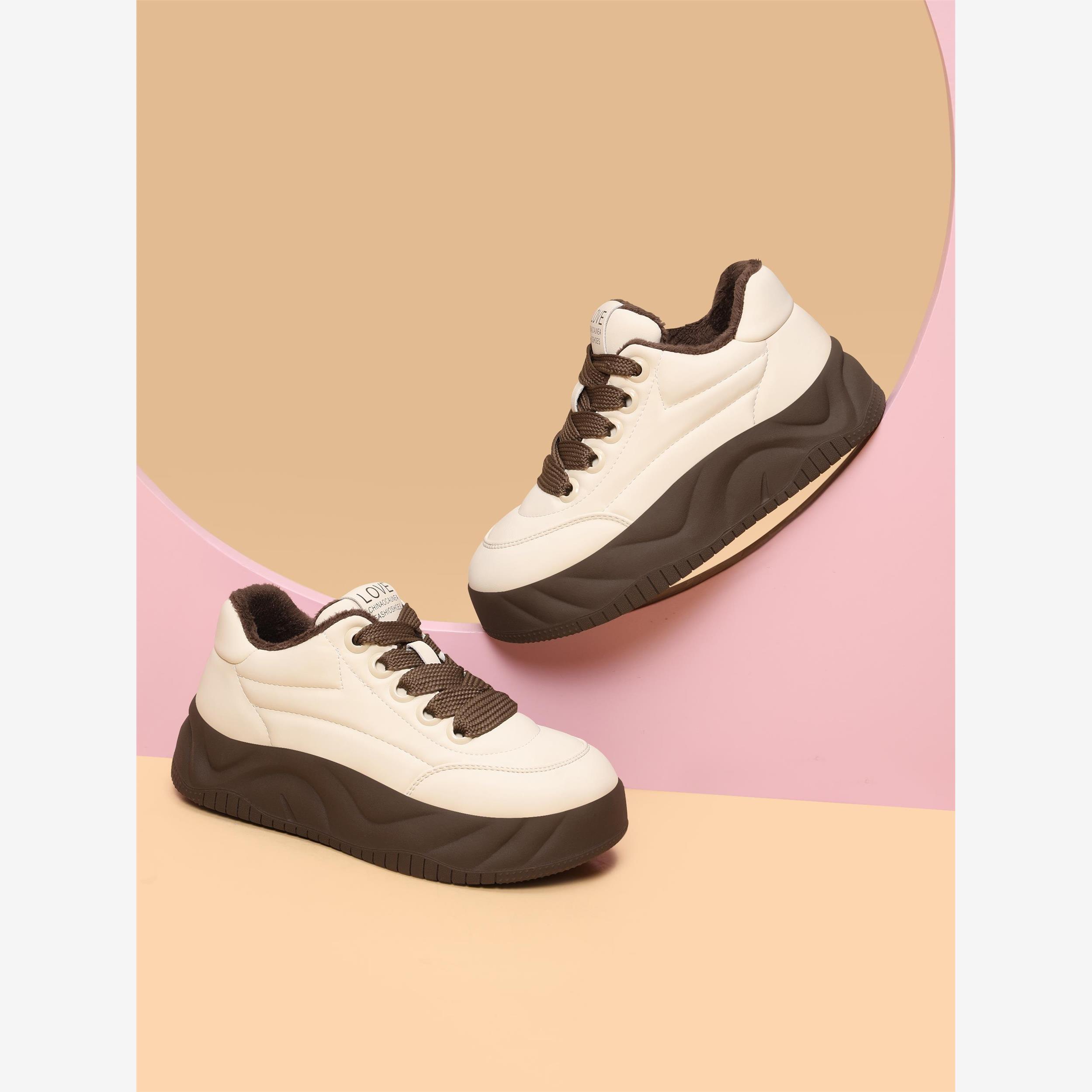 真皮厚底面包鞋女2025年秋冬季新款黑色运动休闲鞋轻便潮百搭板鞋