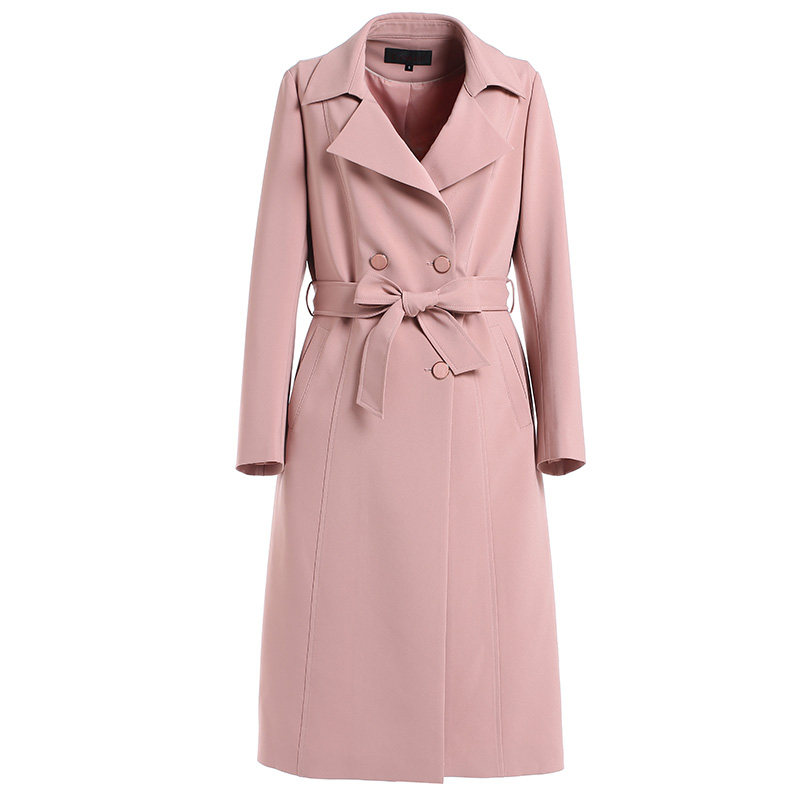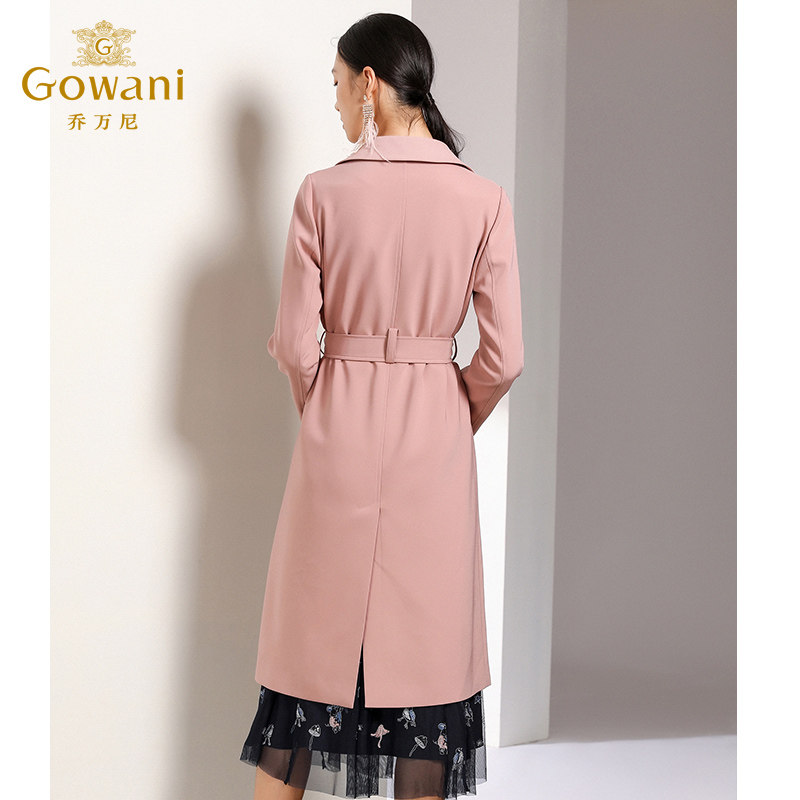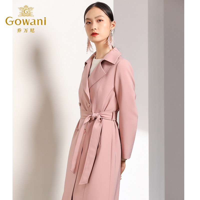 乔万尼春装女商场新款外套赫本风粉色修身气质收腰风衣女中长款