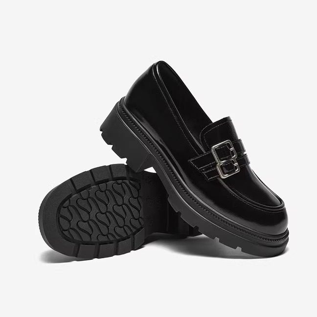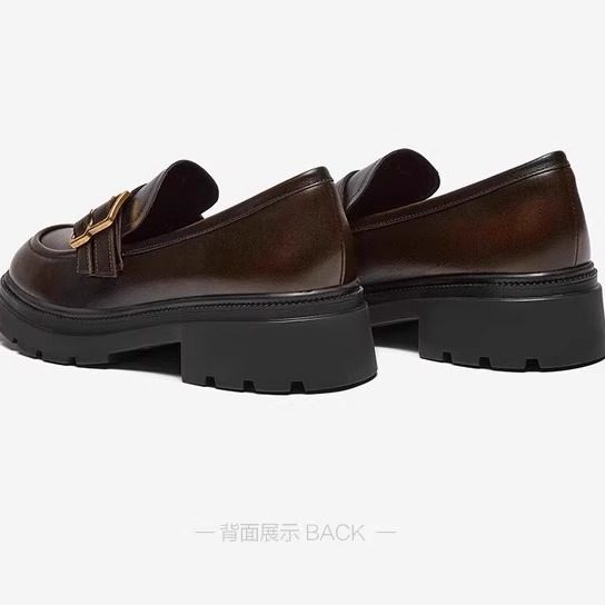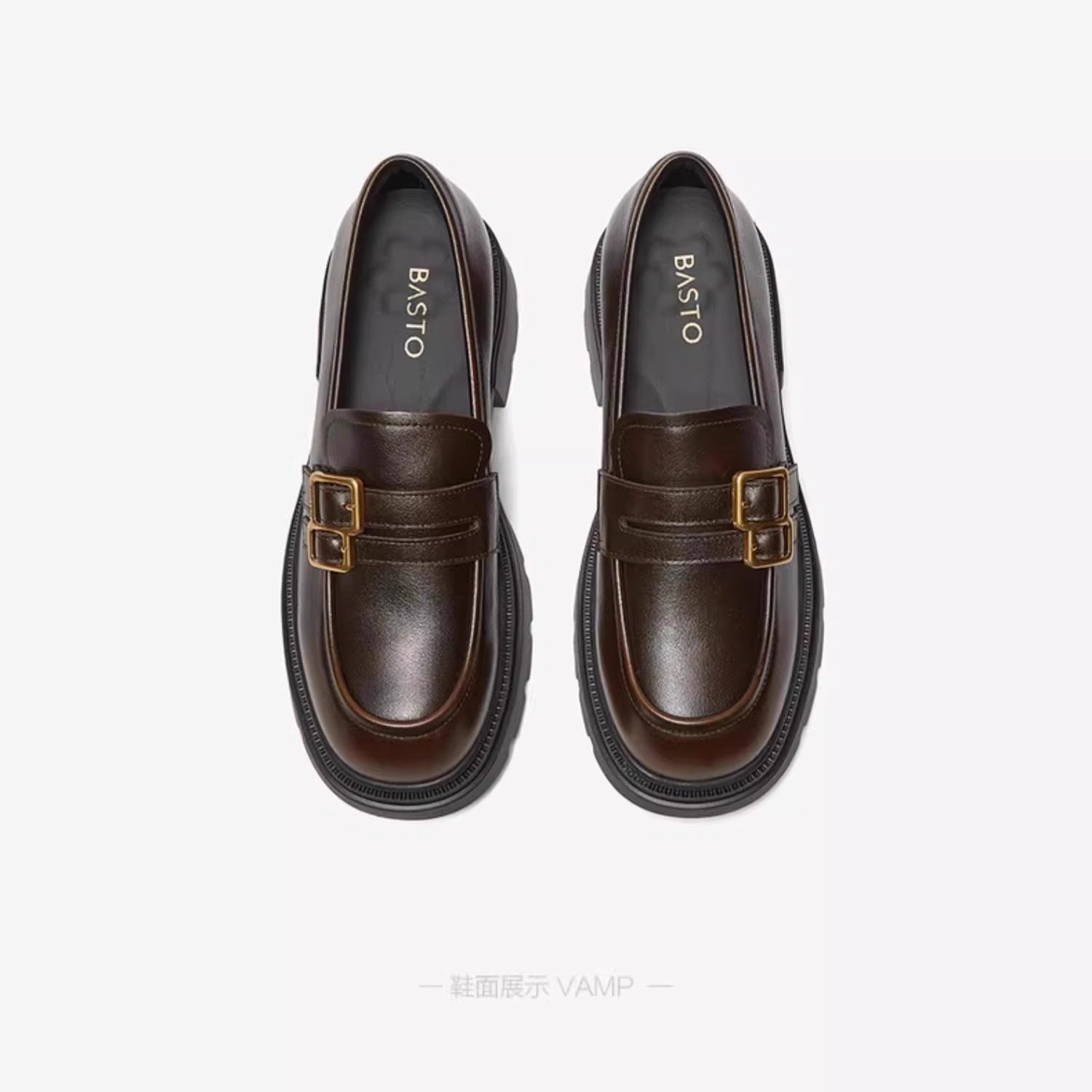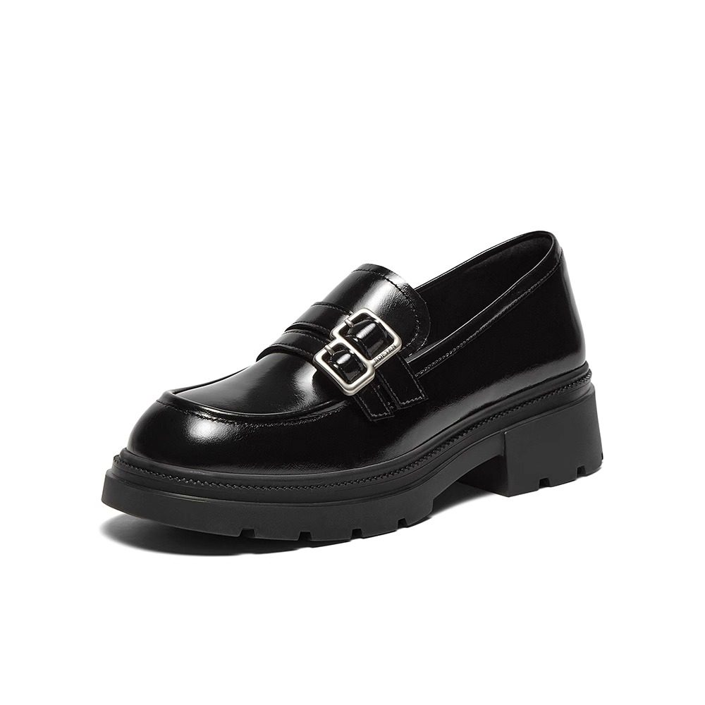 专柜正品百思图2025春款女鞋质感牛皮英伦乐福鞋厚底单鞋TFW93AA5