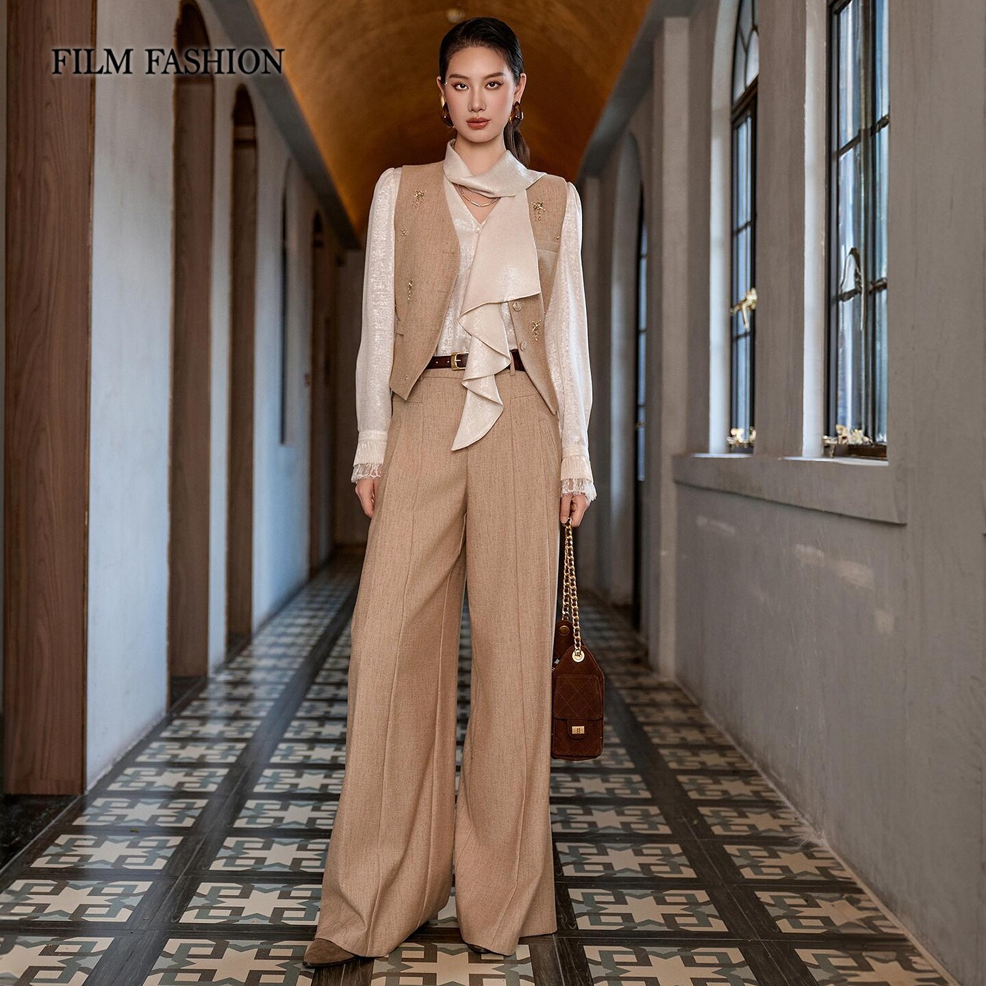 【商场同款】一电影一时装2026春季新款阔腿长裤绵羊毛通勤度假女