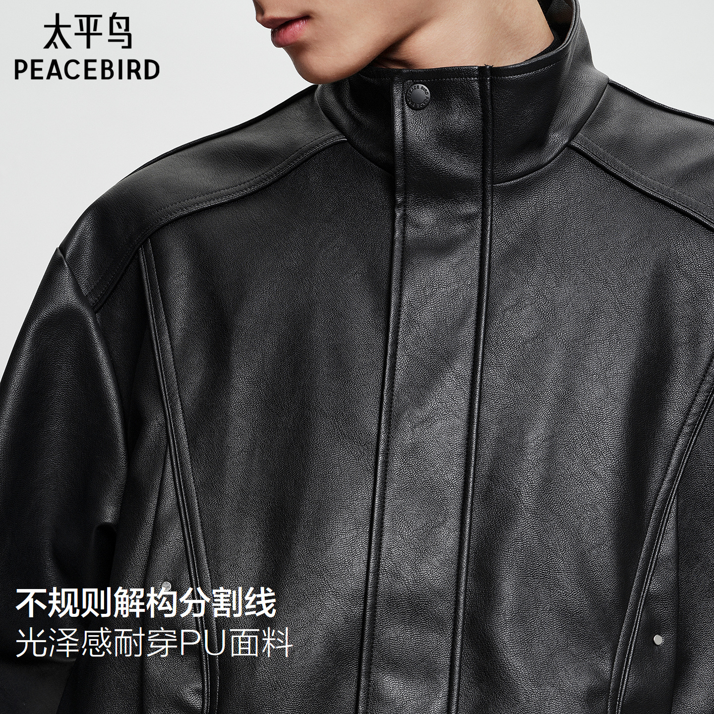 【商场同款】太平鸟男装 2025年冬季新款pu皮立领夹克B2BCF4119