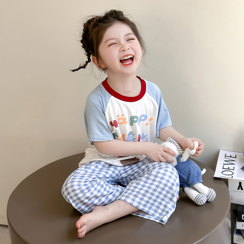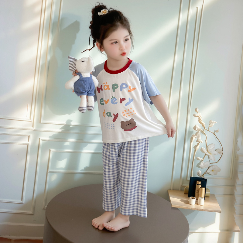 2025新款女童睡衣夏季女宝宝七分袖莫代尔空调服套装薄款家居服