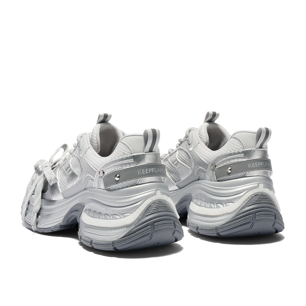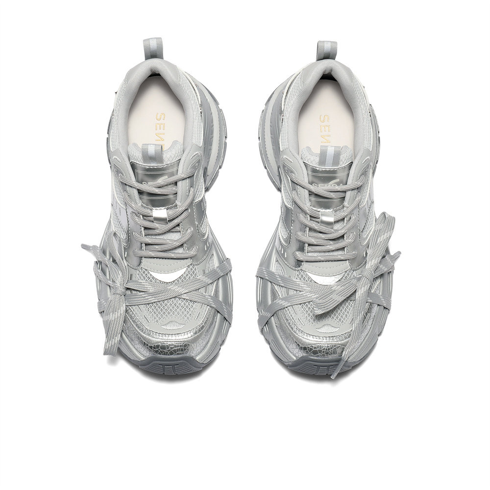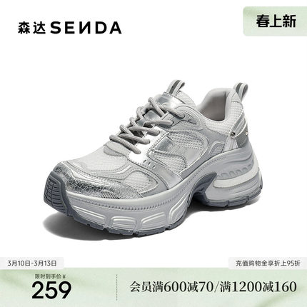 森达银色网面增高老爹鞋女款春夏新商场同款厚底运动鞋XPS01BM5