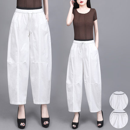 2025秋季新款纯棉厚款哈伦裤女松紧腰大码显瘦九分灯笼气球裤