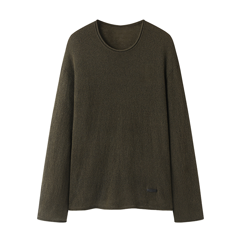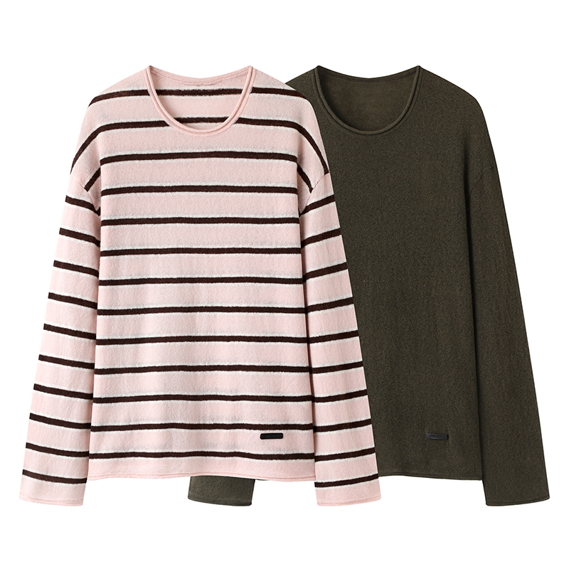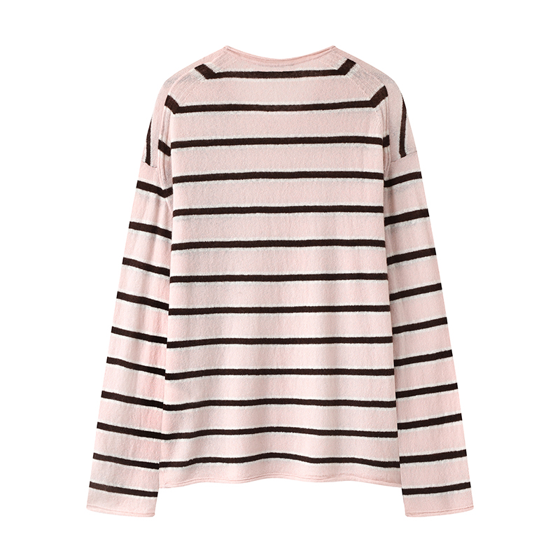 针织衫2025秋季新品休闲百搭宽松落肩袖卷边圆领条纹打底衫毛衣女