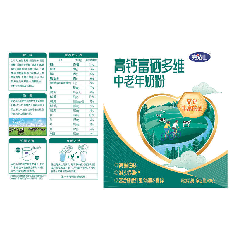 完达山高钙富硒多维中老年成人早餐牛奶粉冲饮营养补钙700g罐装