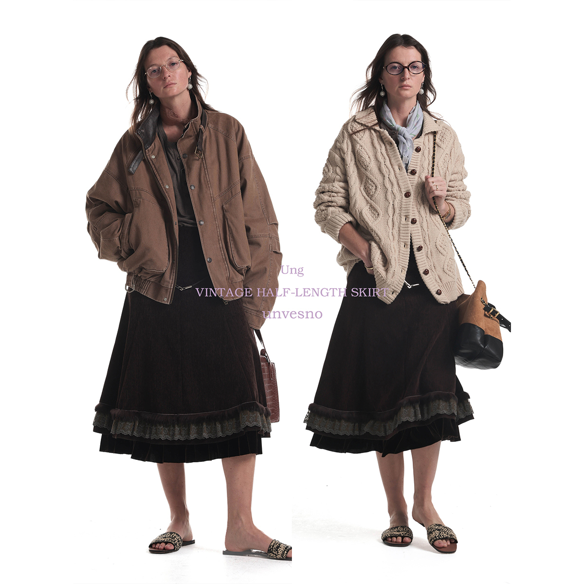 【多重拼接】Unvesno(UN)中古重工结构分割蕾丝兔毛半身裙