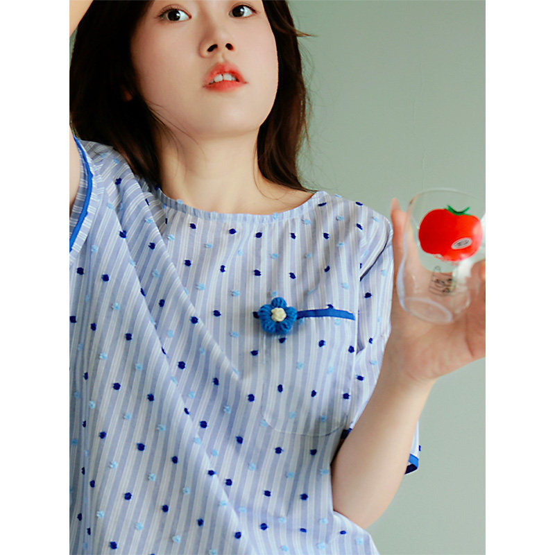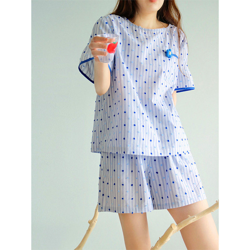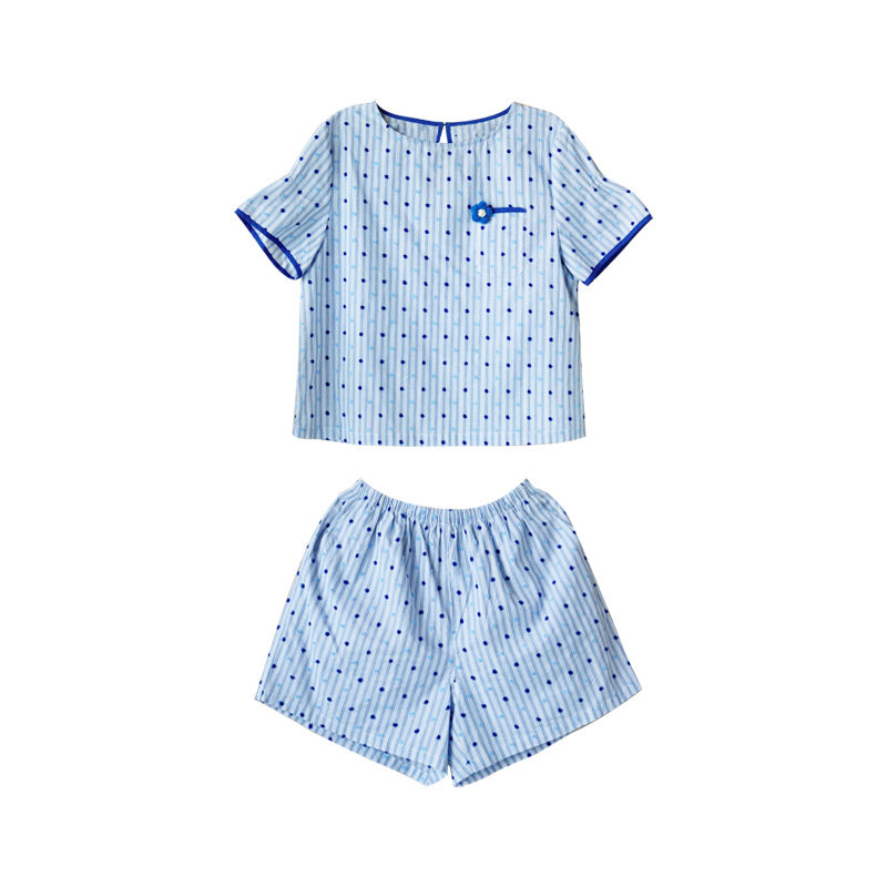克莱因蓝·Fishhome原创纯棉薄款条纹短袖短裤家居服可外穿2026夏