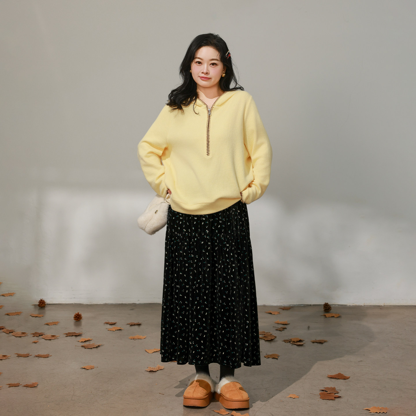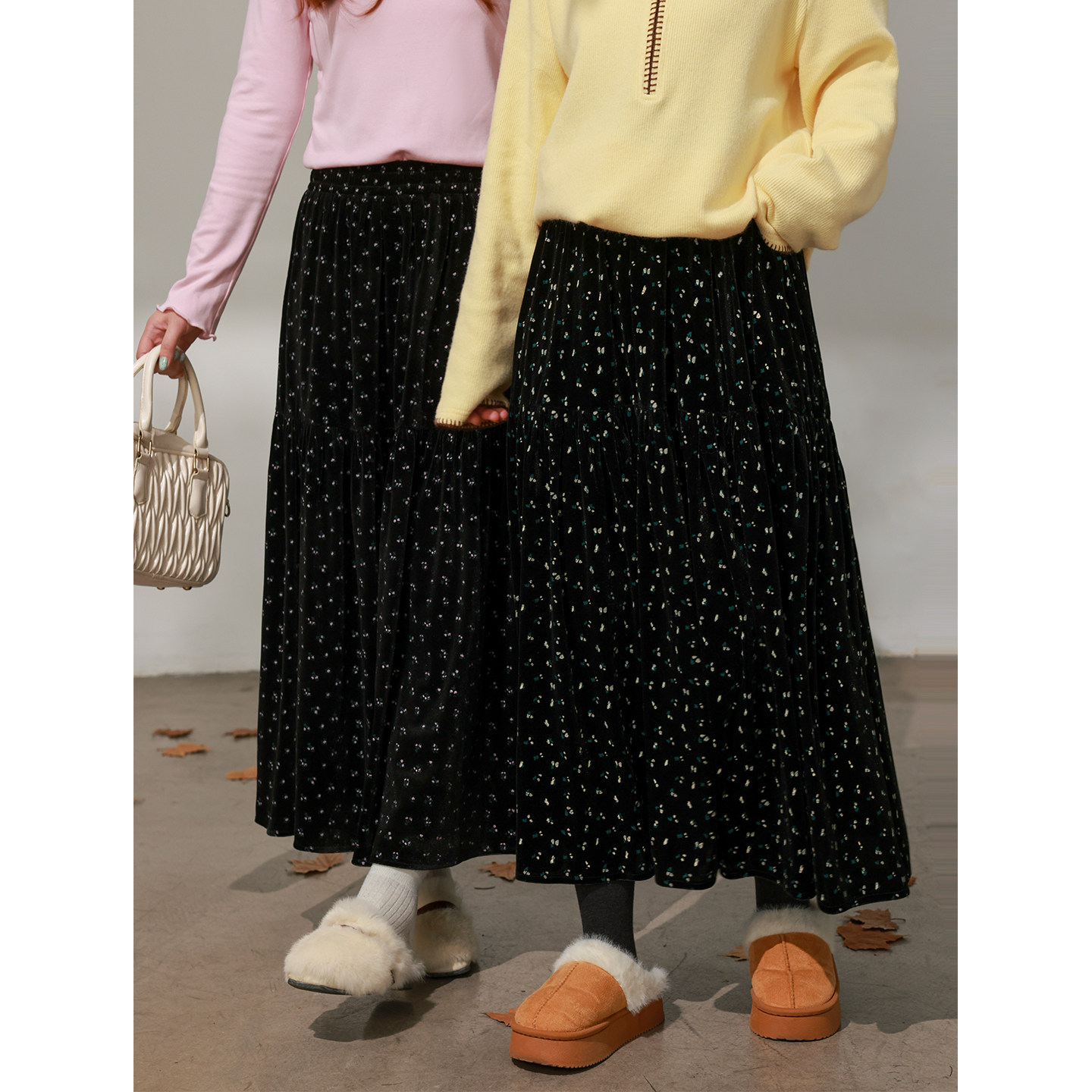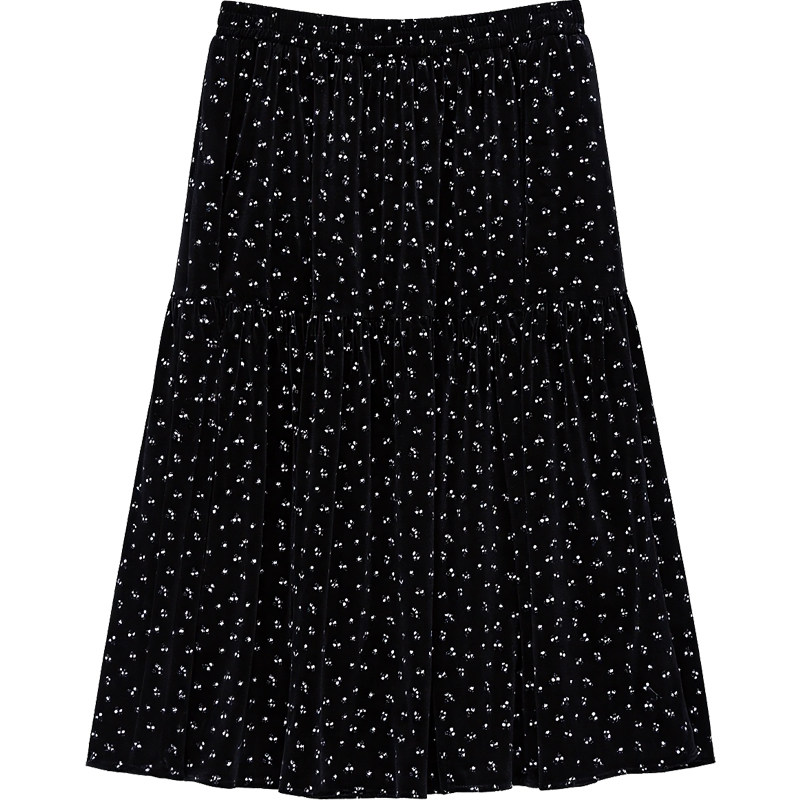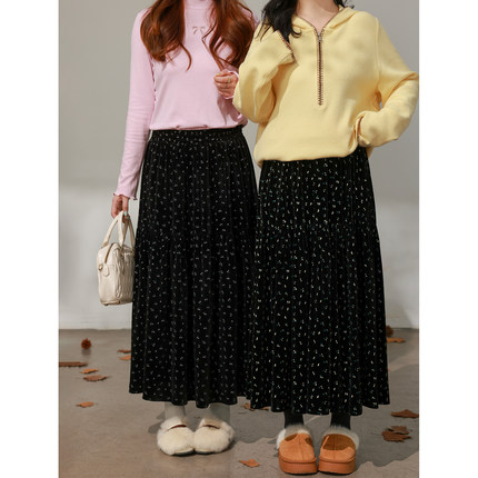 DM100大码百分百女装微胖mm冬季甜美百搭碎花丝绒伞摆长款半身裙